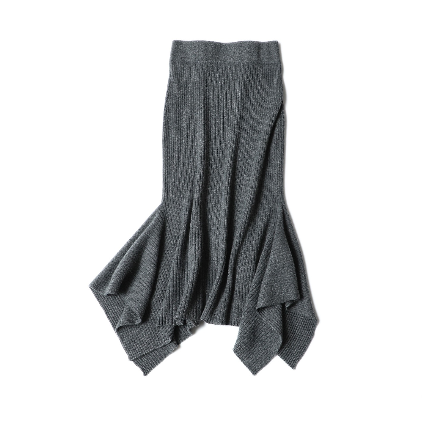 纯羊绒针织不规则弹性过膝鱼尾裙