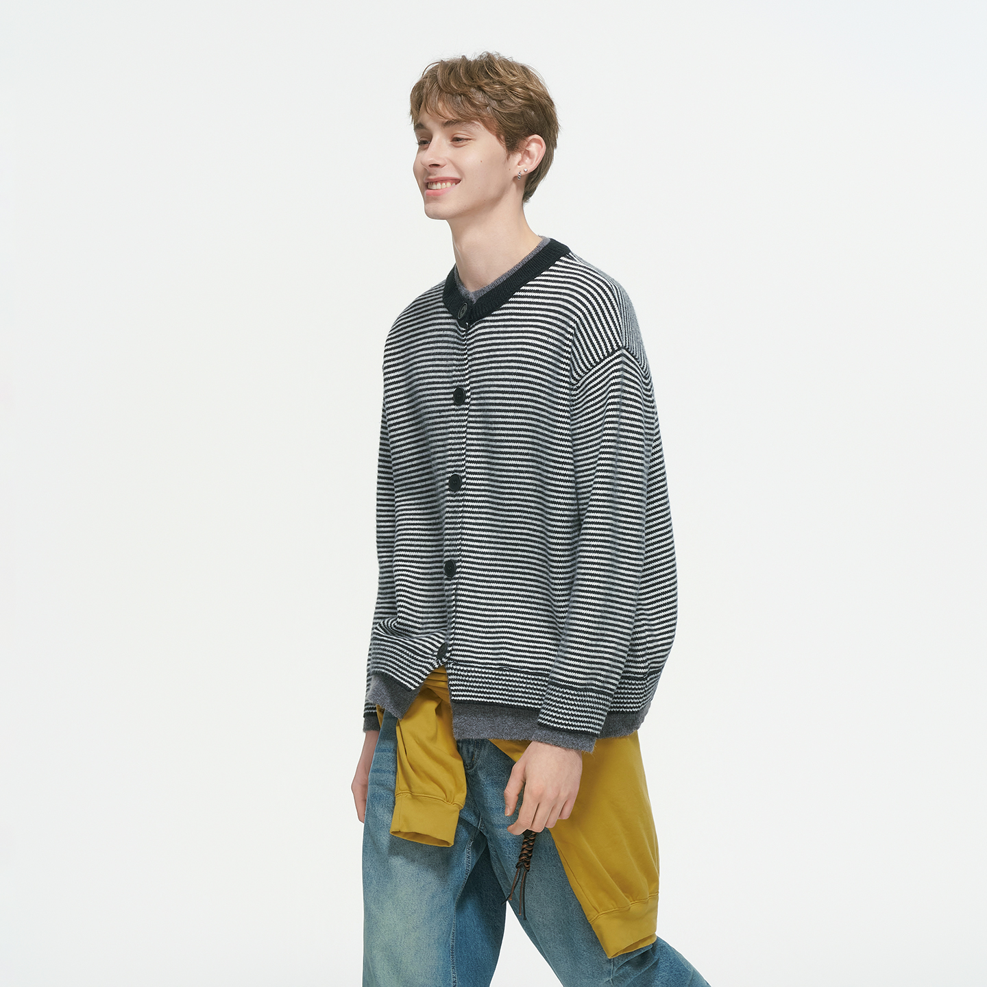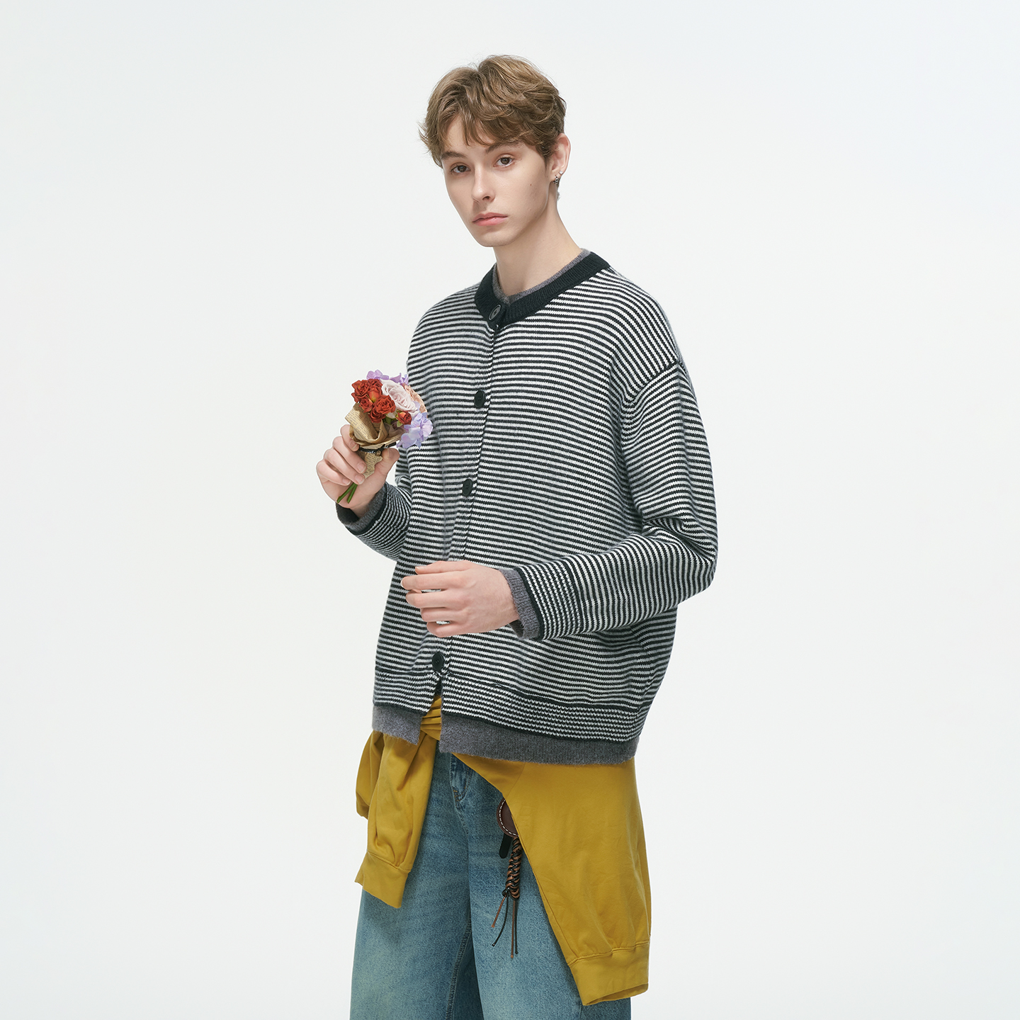 Dream made老钱风假两件条纹开衫毛衣男款秋季慵懒休闲针织衫外套