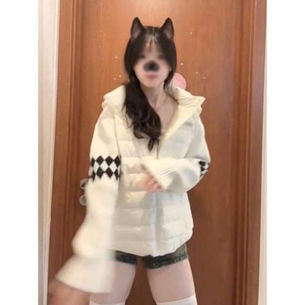 小众独特减龄针织拼接保暖棉服女ins冬季新款可爱软妹防寒面包服