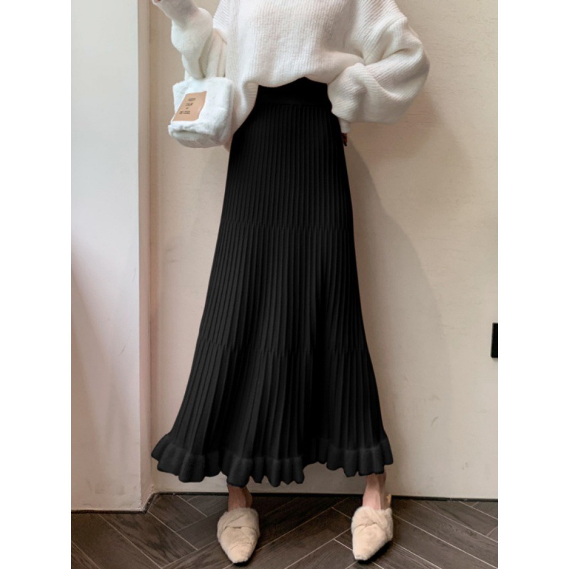 KANING遮胯粉色百褶裙高腰大摆半身裙2025秋冬新款针织半身裙女