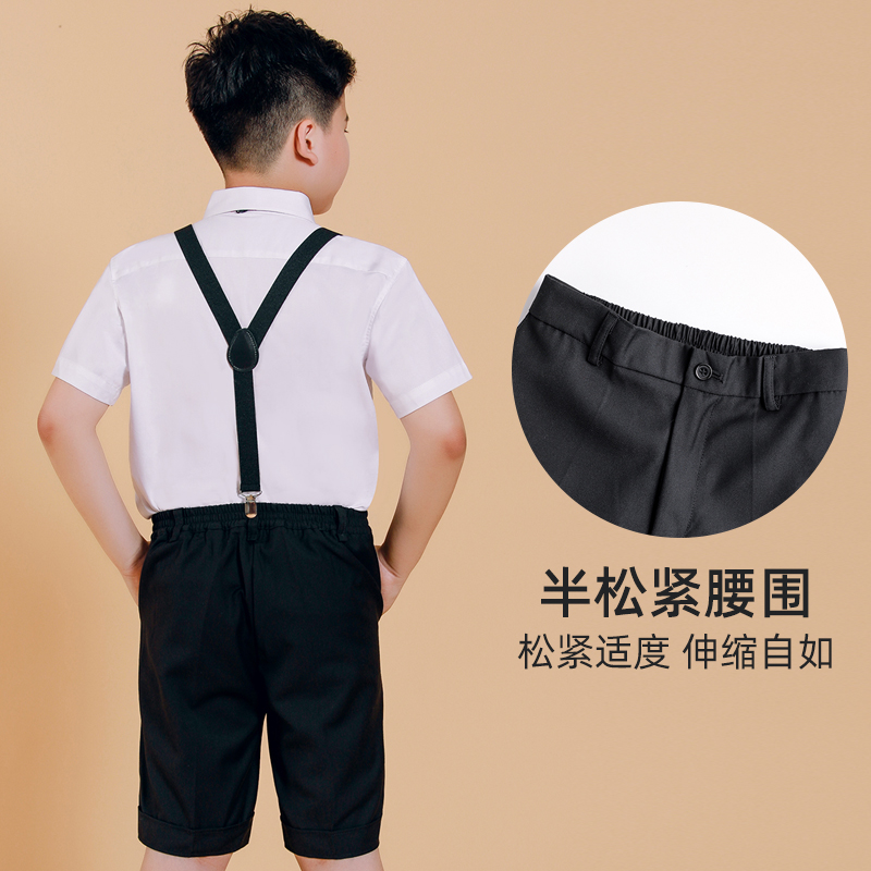 胖童礼服男童夏季短袖白衬衫黑短裤套装大童表演服儿童钢琴演出服