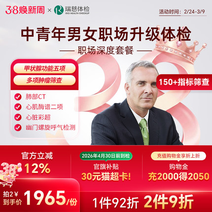 瑞慈体检卡 职场深度套餐白领精英心脑肿瘤多项彩超男女士中青年