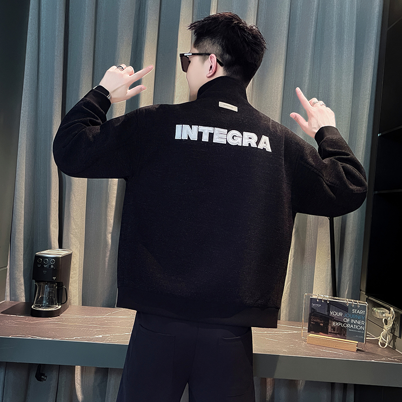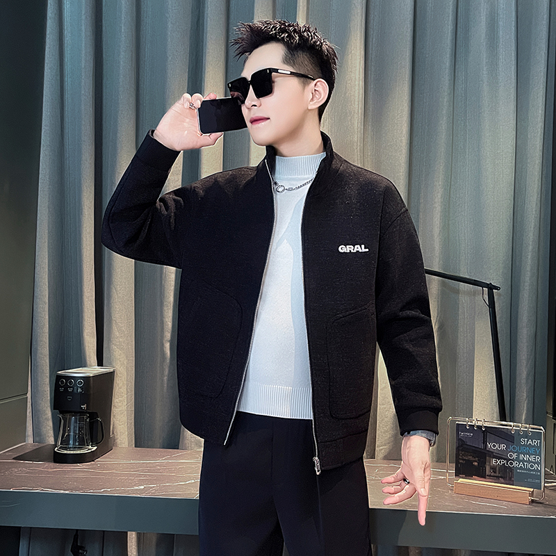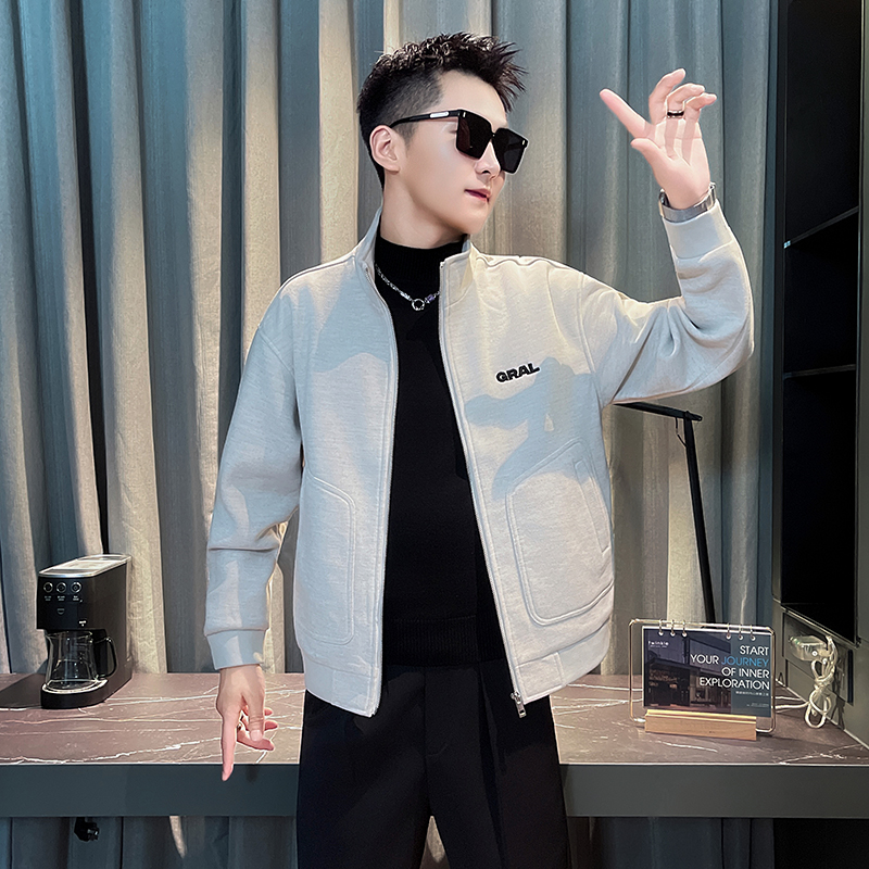 秋季新款设计感大口袋字母刺绣修身夹克外套男xs小码小号褂子上衣