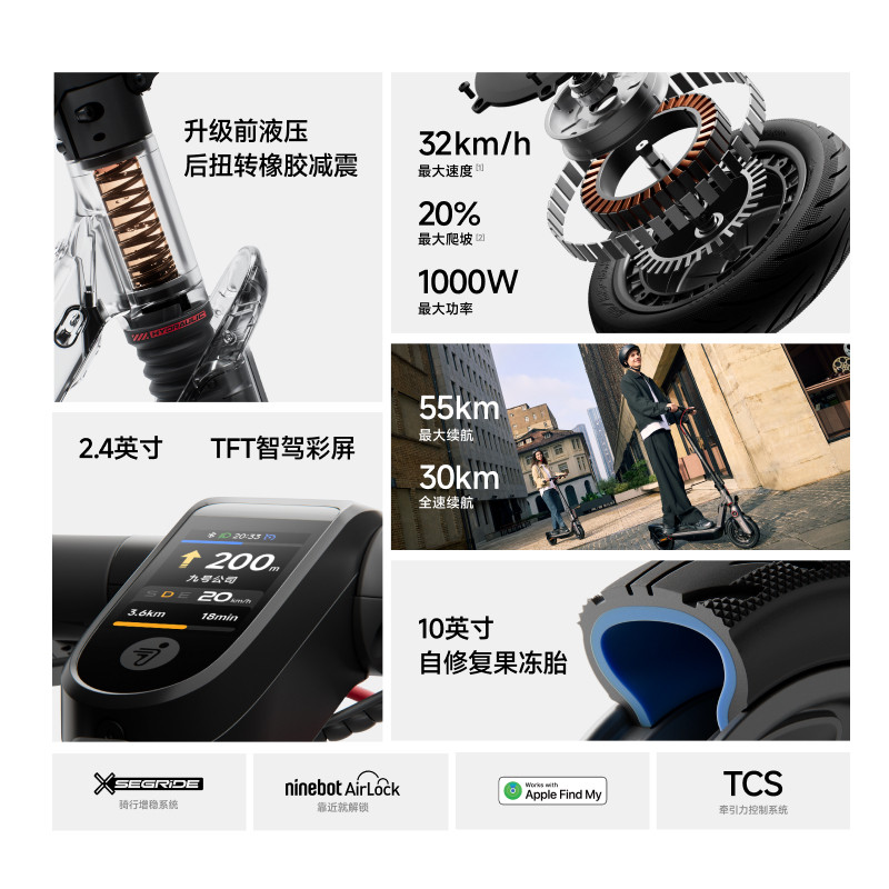 ninebot九号电动滑板车F3升级款成年人便携式折叠两轮代步电动车