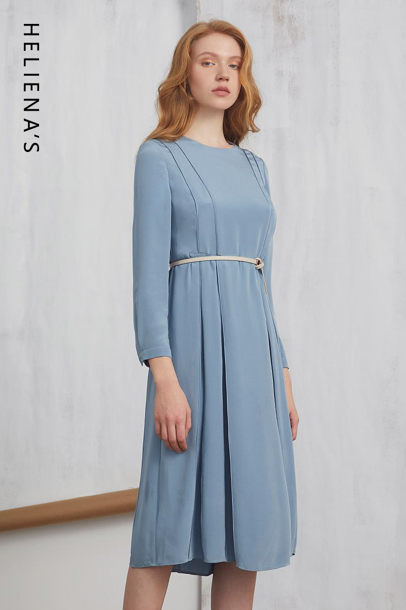 海兰丝奢睿春夏新品商场同款欧式气质收腰A字中长款连衣裙职业女