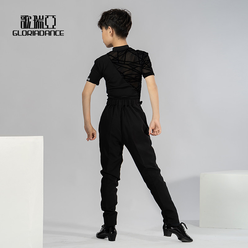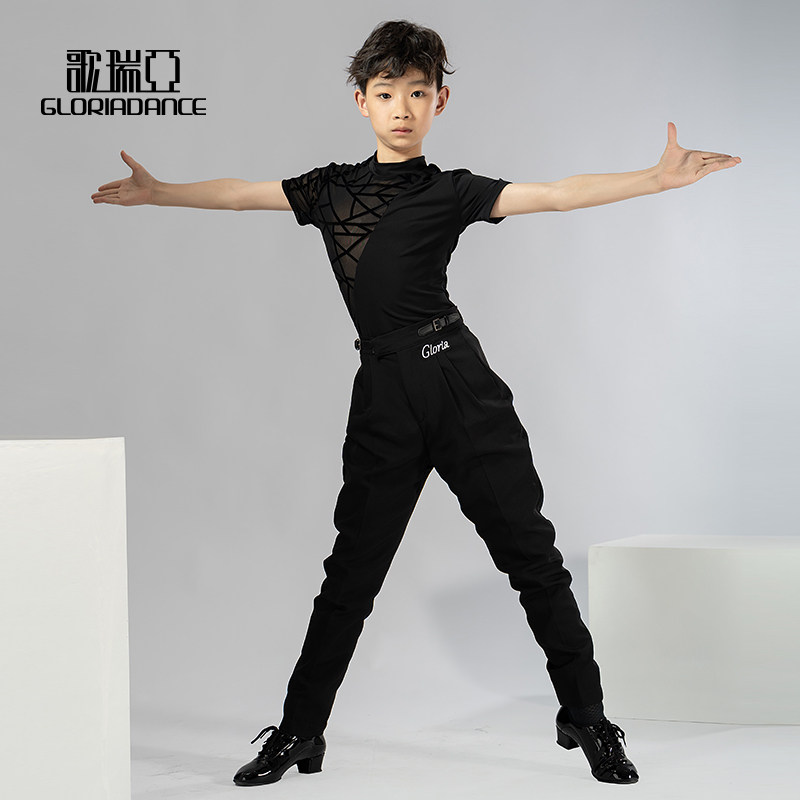 歌瑞亚拉丁舞服夏季新款男少儿童网纱拼接短袖长袖上衣练功服5035