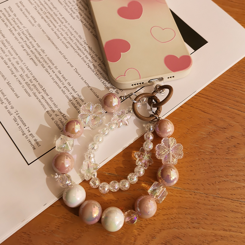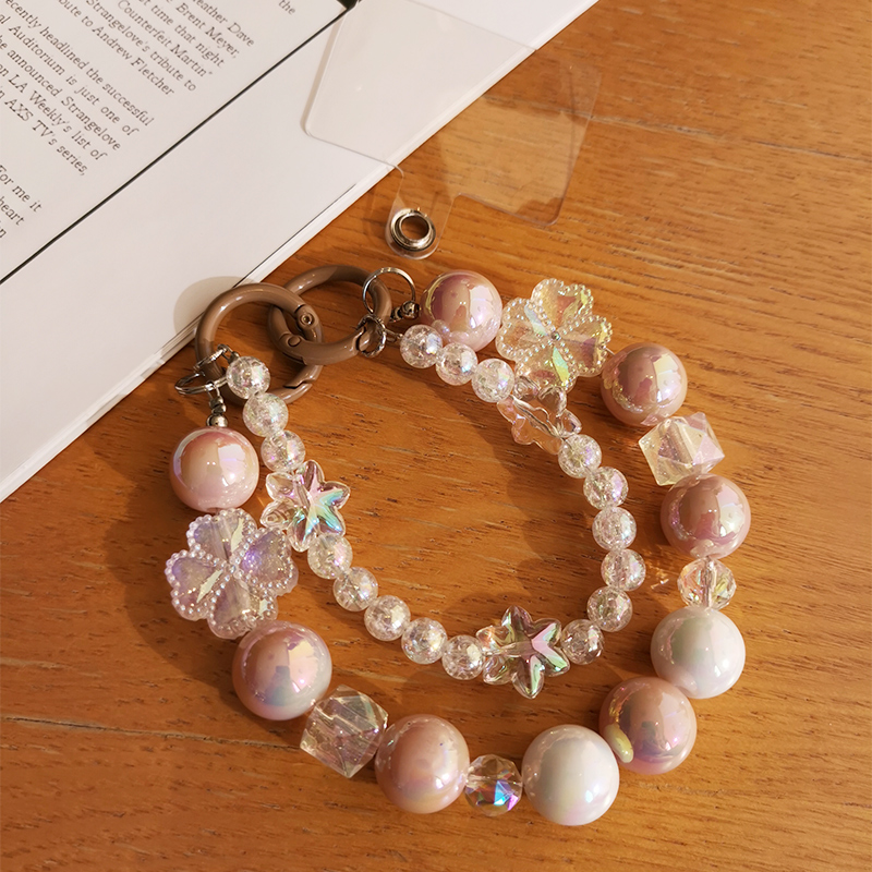 手机挂绳短款四叶草水晶手机双链条手腕绳女款ins风挂饰网红同款炫彩圆珠挂链防丢绳防摔结实耐用小挂件