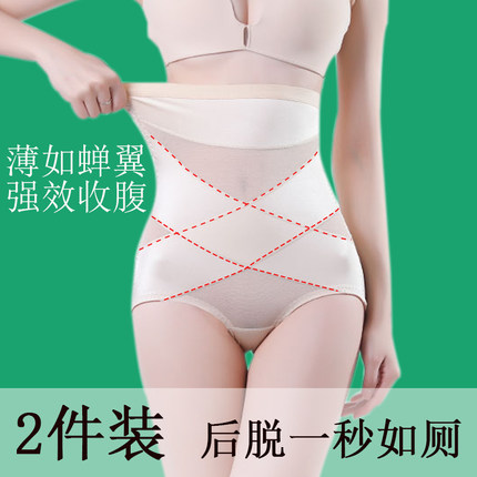 两件装高腰收腹内裤女夏薄款后脱式三角裤大码产后塑身裤棉档裤女