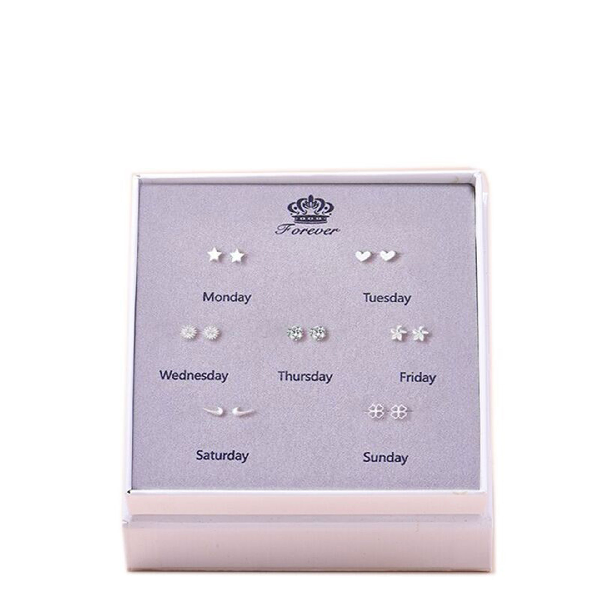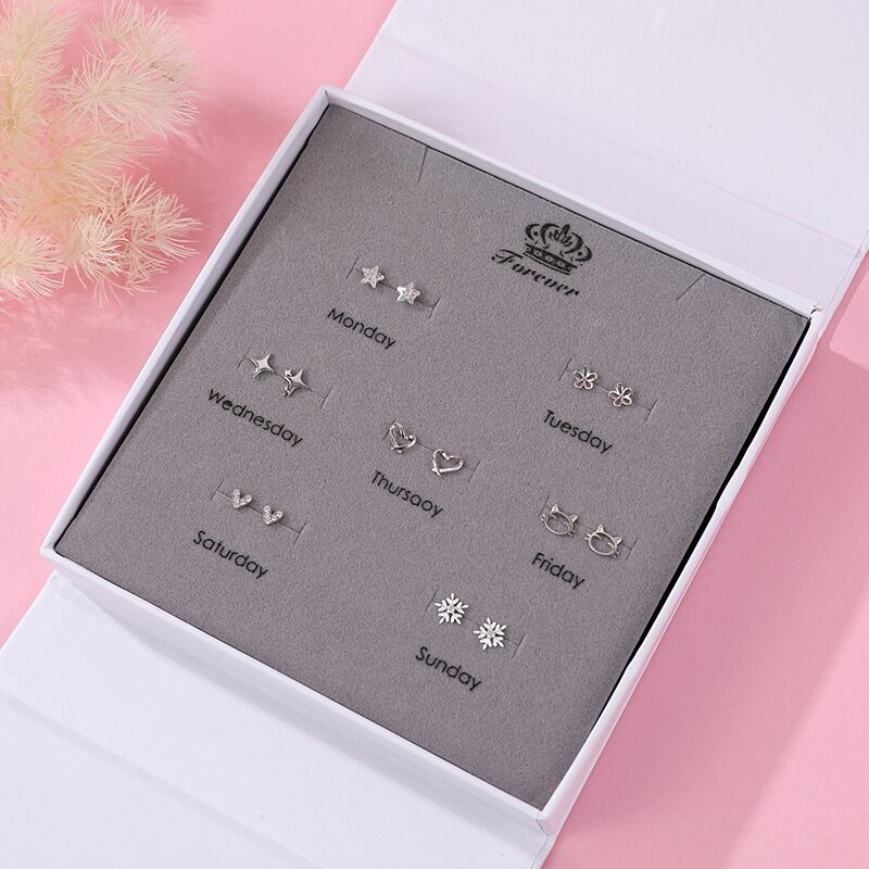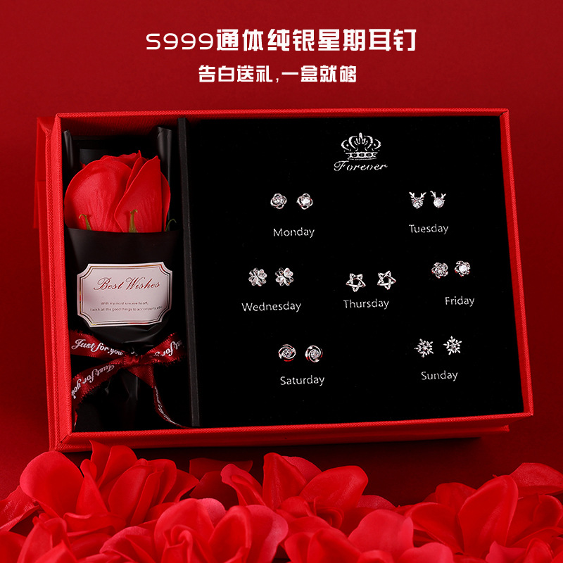 一周星期耳钉女s999纯银耳钉礼盒套装足银耳饰送女友老师生日礼物