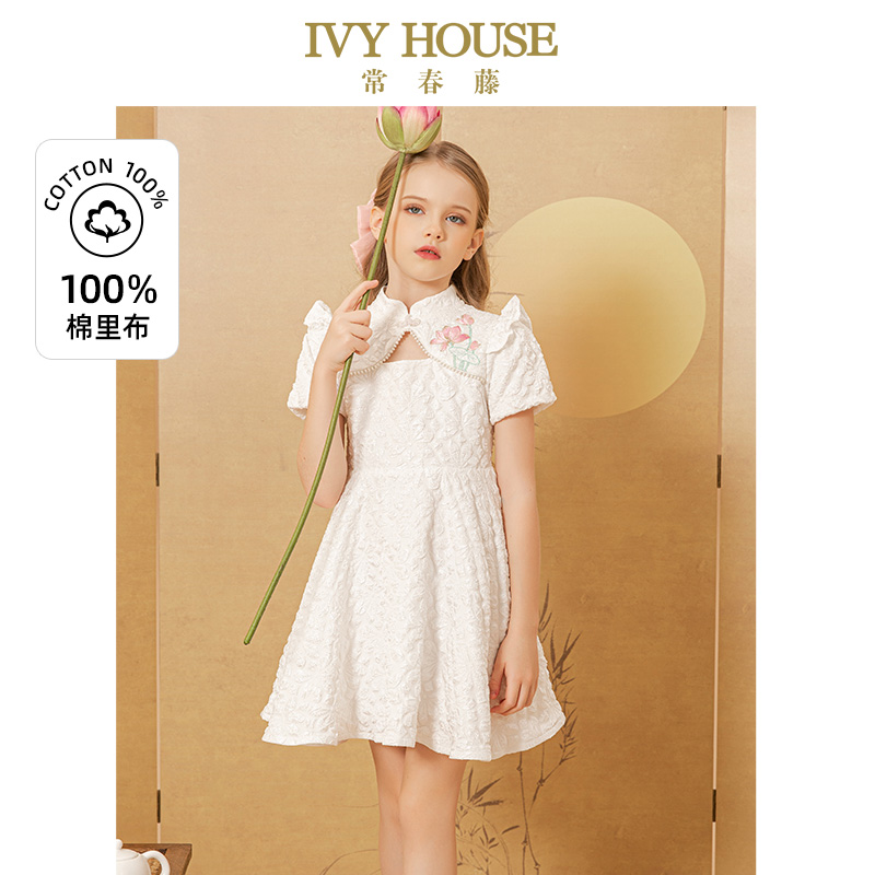 IVY HOUSE常春藤儿童装女童连衣裙夏季款 国风新中式鎏金改良旗袍