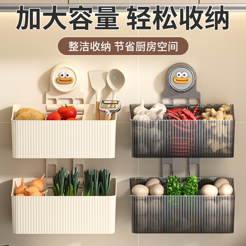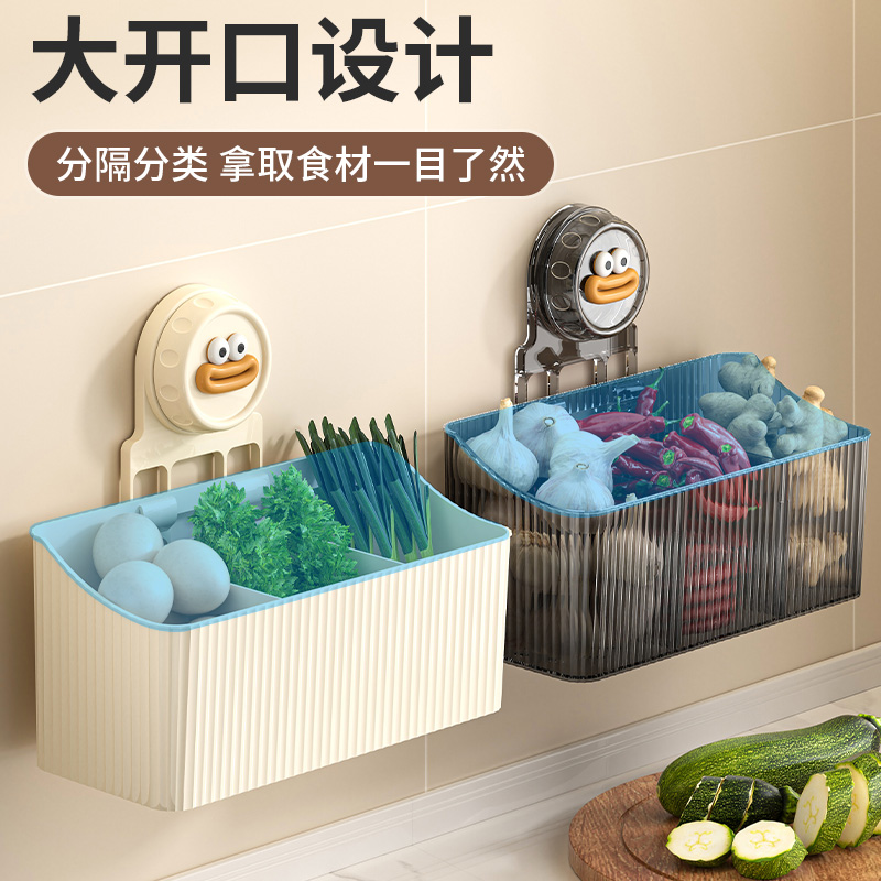 葱姜蒜收纳盒吸盘厨房收纳筐壁挂免打孔置物架生姜大蒜小挂篮神器
