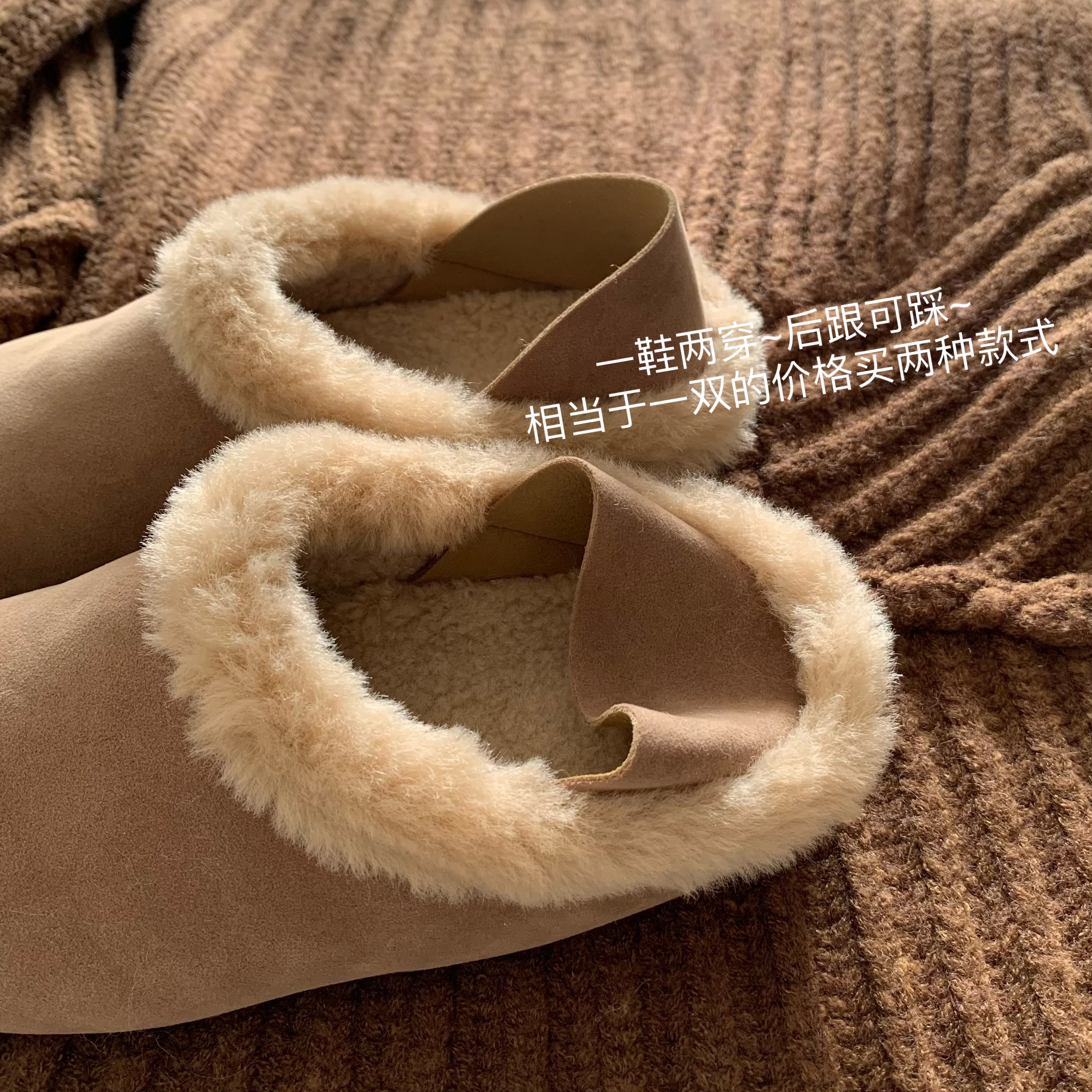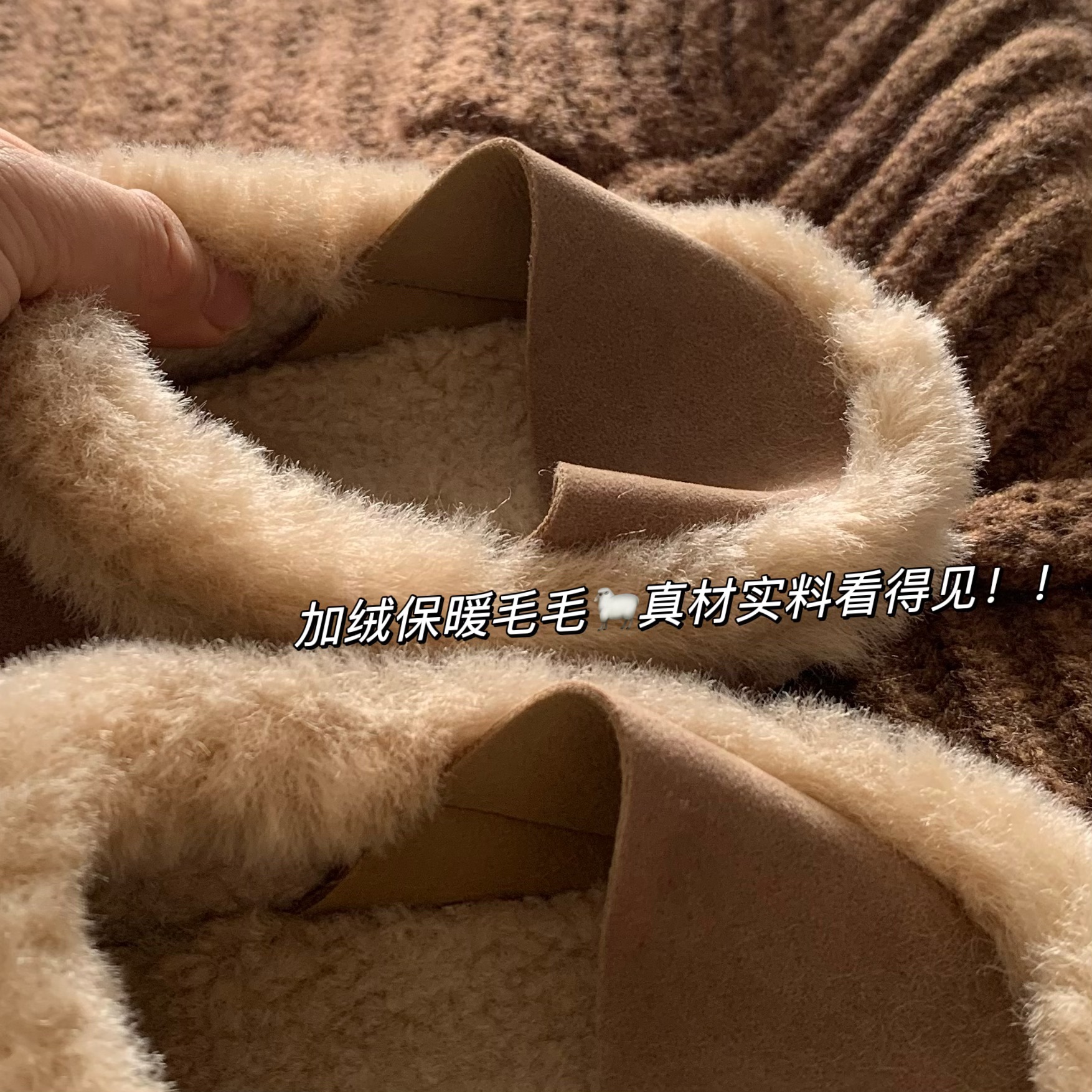 安哥拉剪毛~INS三喜同款勃肯鞋女冬季加绒一脚蹬乐福棉鞋毛毛拖鞋