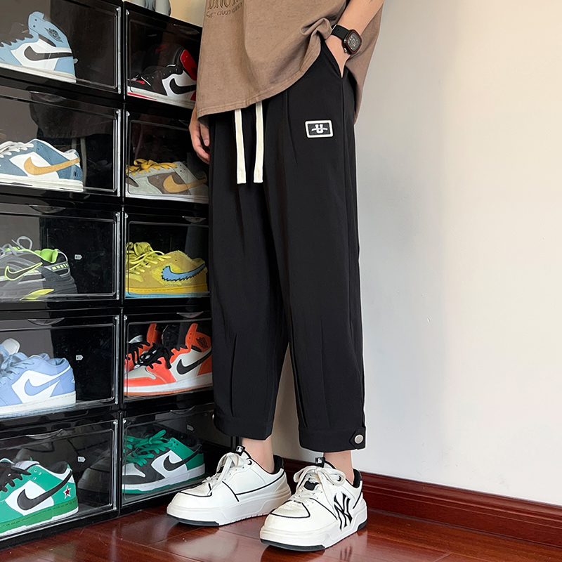 STA夏季薄款冰丝休闲裤男女宽松直筒阔腿运动速干九分长裤潮牌
