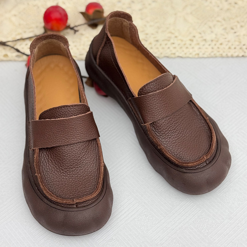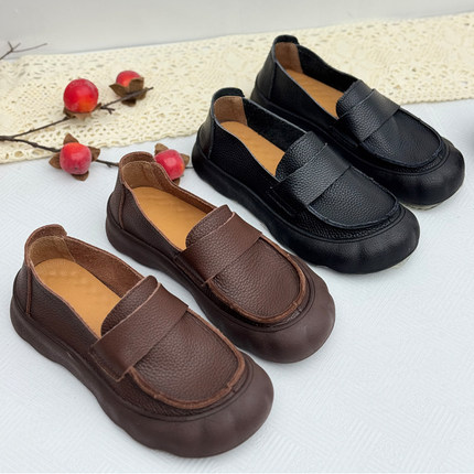复古真皮单鞋女2026新款厚底一脚蹬圆头轻便舒适女鞋休闲乐福鞋子