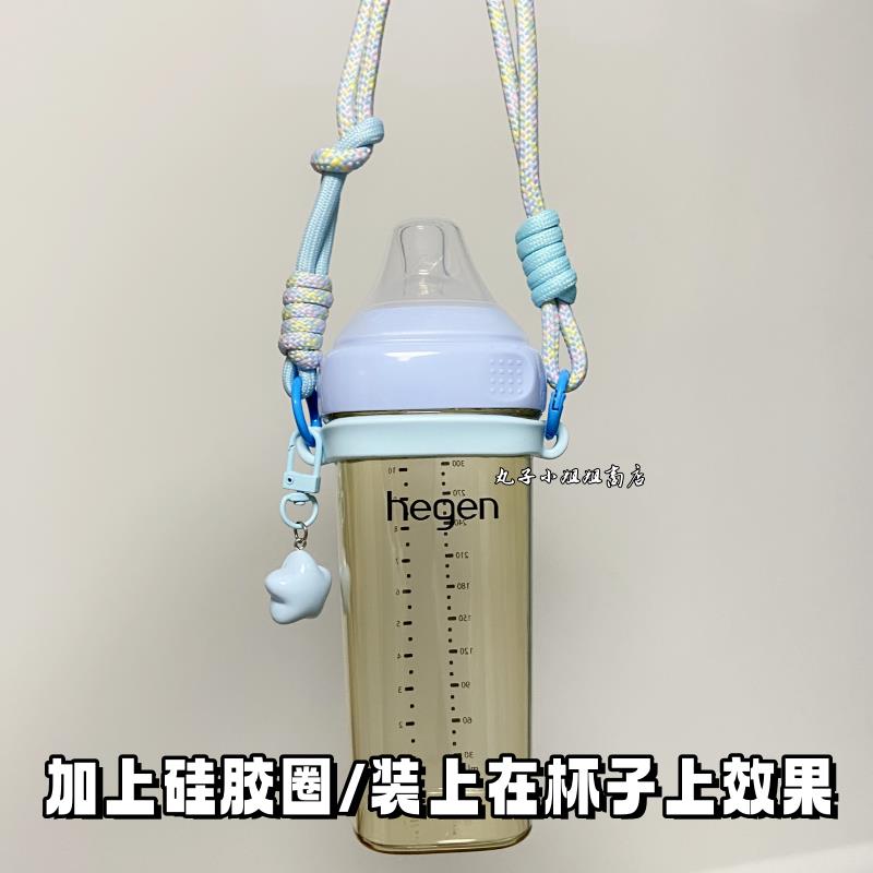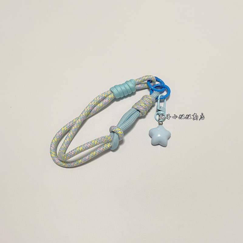 DIY水杯提绳杯套彩色编织绳星星挂件蓝粉拎绳儿童水杯手腕绳配件