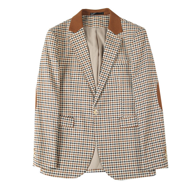 韩版修身男士复古格子西装外套春款轻奢个性拼色千鸟格西服单西潮
