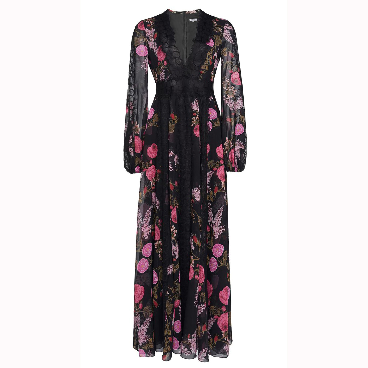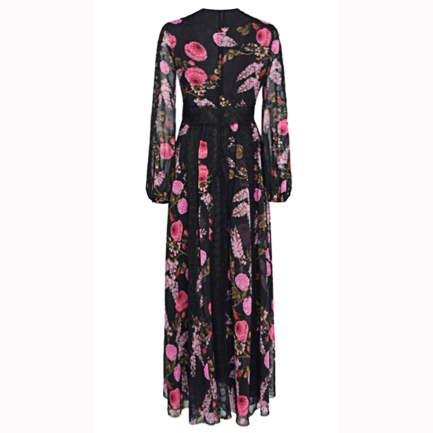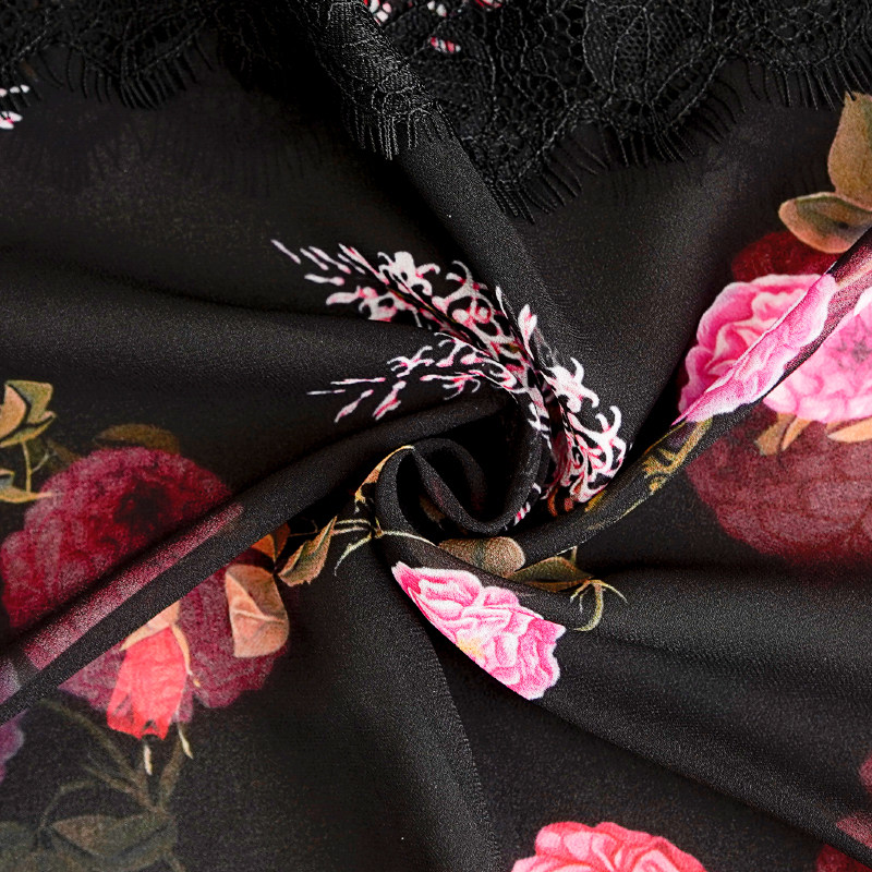 绝美|轻奢|黑色蕾丝拼接碎花长裙