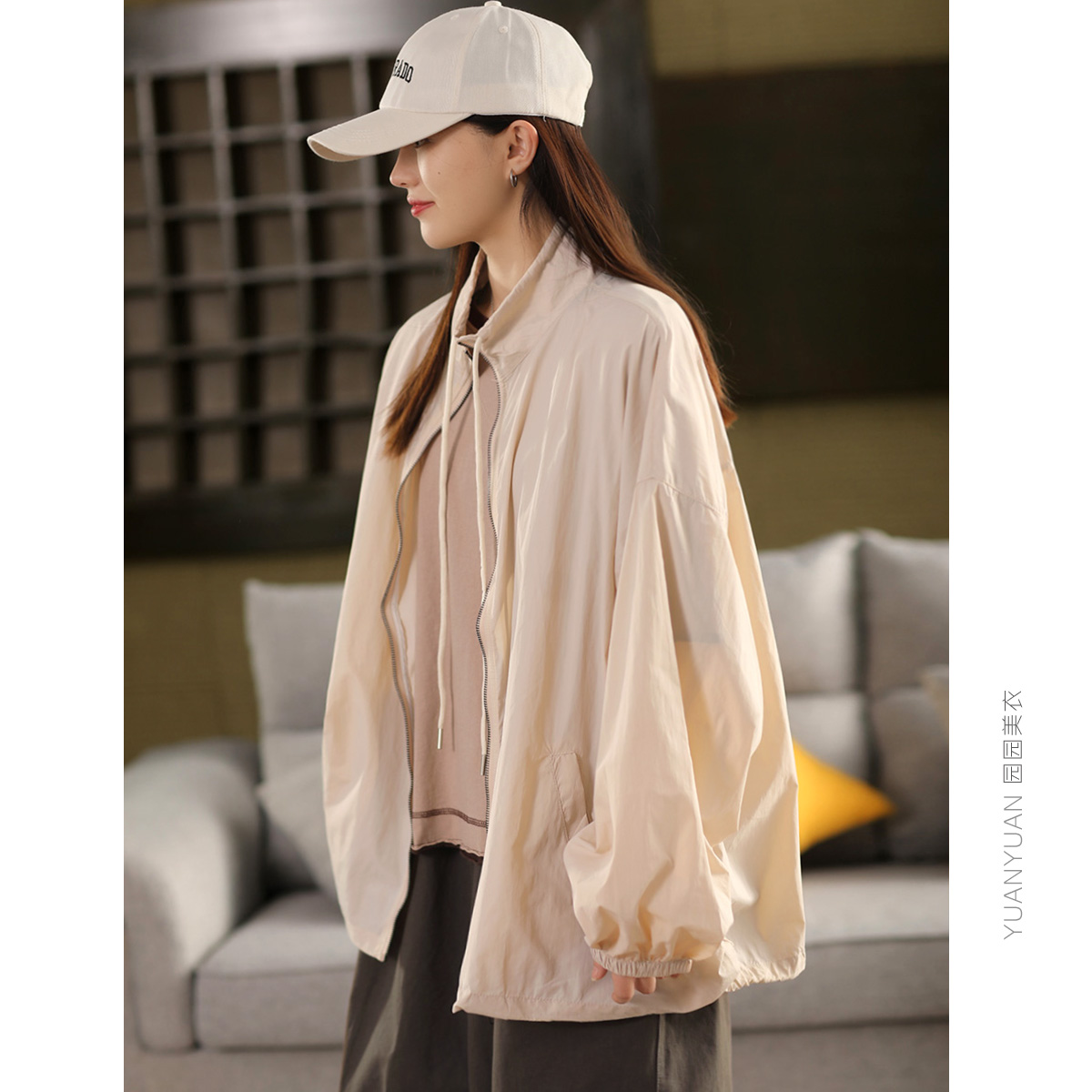 园园美衣定制高密薄款外套女抽绳领拉链长袖开衫夏季外搭防晒外搭
