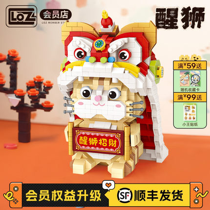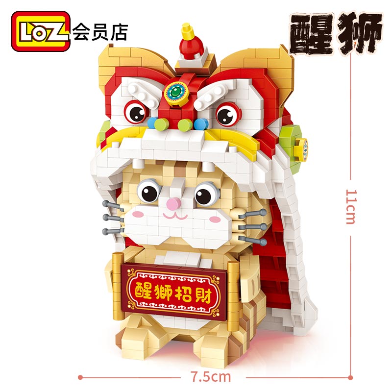 LOZ/俐智醒狮招财猫 微钻积木小颗粒国潮拼装 贺岁春节中国风礼物