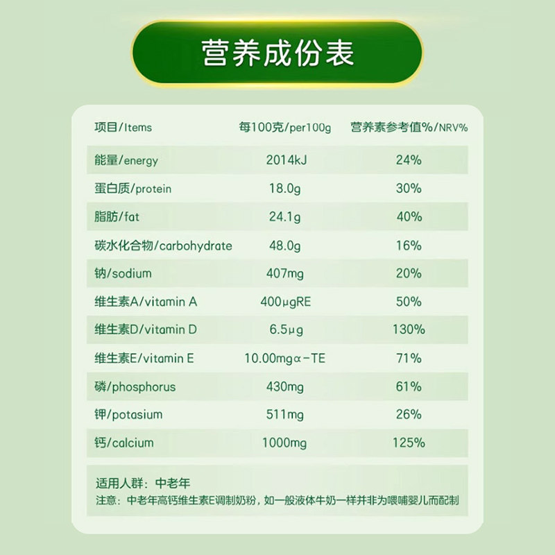 光明奶粉正品官方旗舰店高钙维E中老年成人营养品奶粉牛奶粉