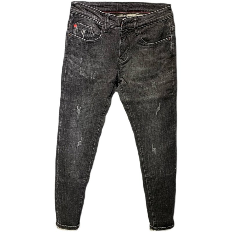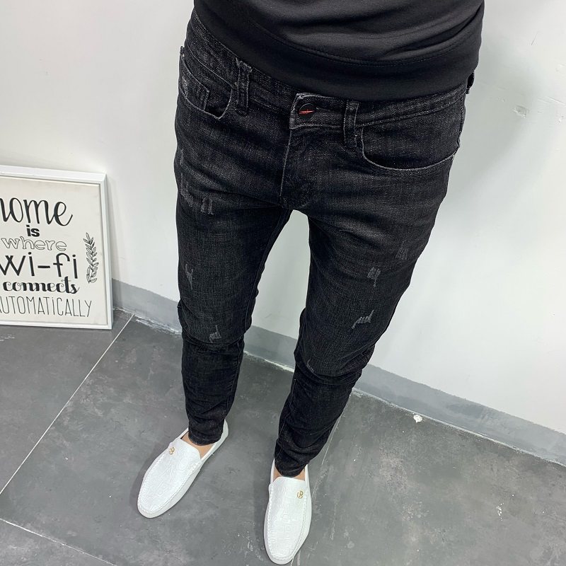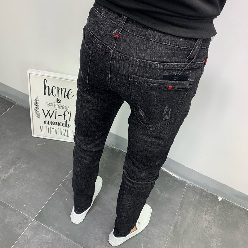 潮牌男士牛仔裤春秋款黑色韩版潮流修身小脚裤弹力休闲水洗长裤子