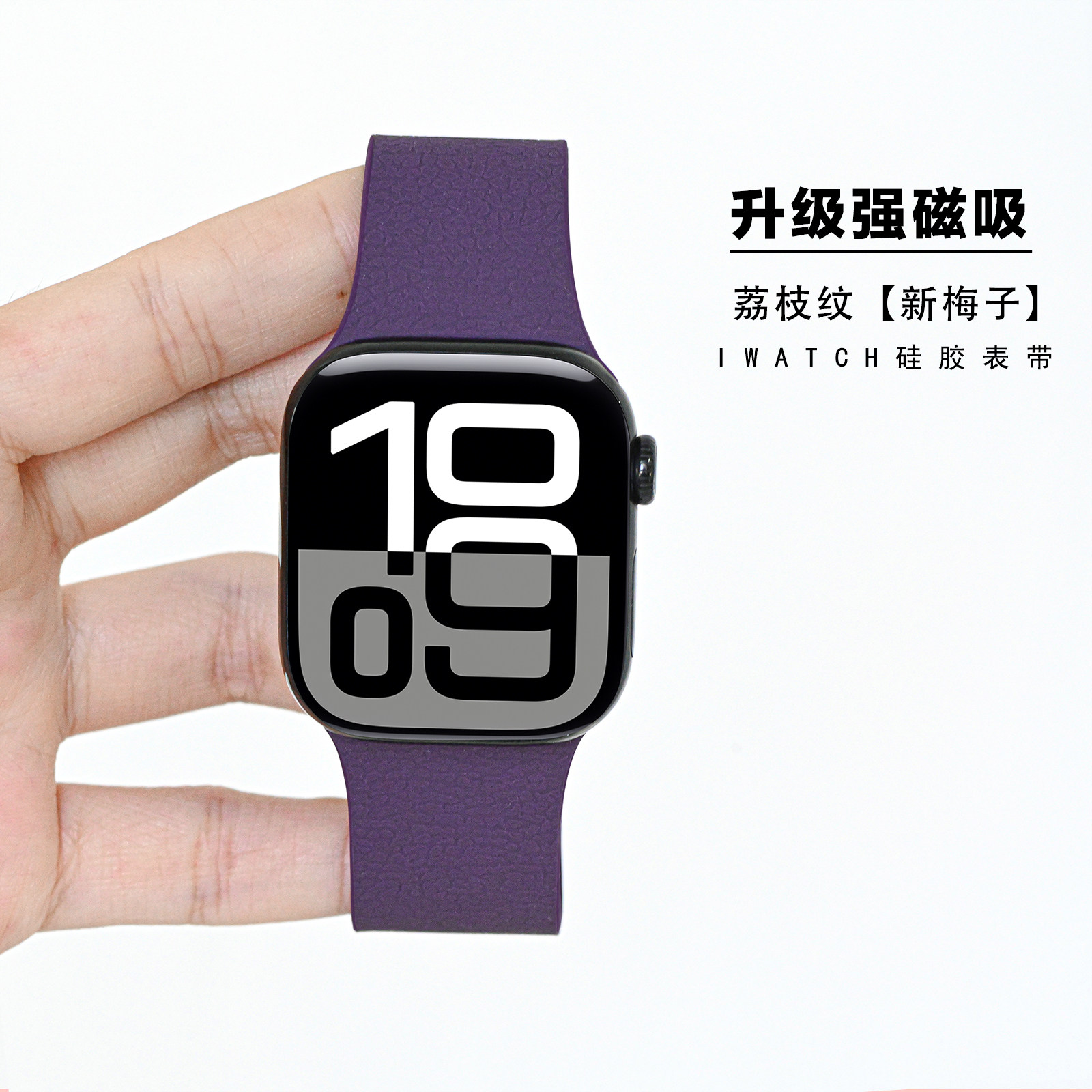 适用applewatch9硅胶磁吸荔枝纹表带S11/10苹果手表8运动回环ultra自流平硅胶透气腕带iWatch7/6男女新款春夏