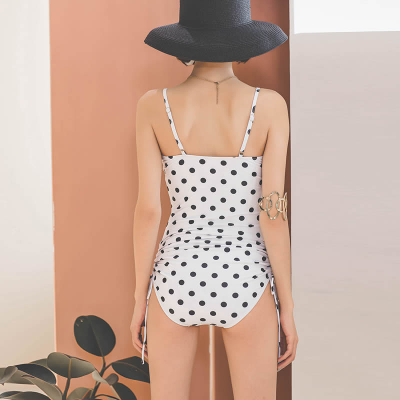 少年齐 泳衣女连体温泉复古波点韩国学生显瘦遮肚保守度假游泳装