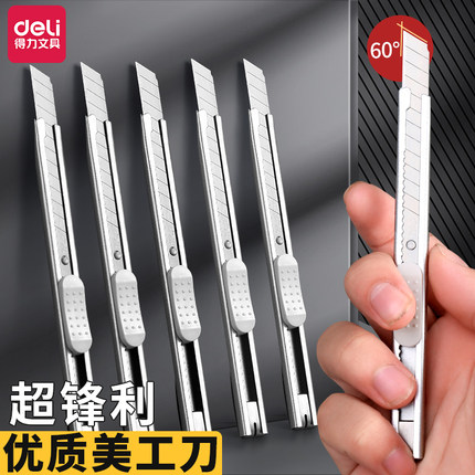 得力60度美工刀小号小刀拆快递神器小型刀片壁纸刀工具刀开箱刀美术生专用可爱工用戒刀不锈钢钛合金刀架