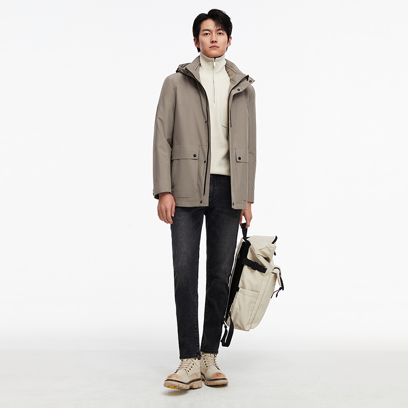 [商场同款]九牧王男装JW6C50817脱卸帽款棉服新防风外套SN