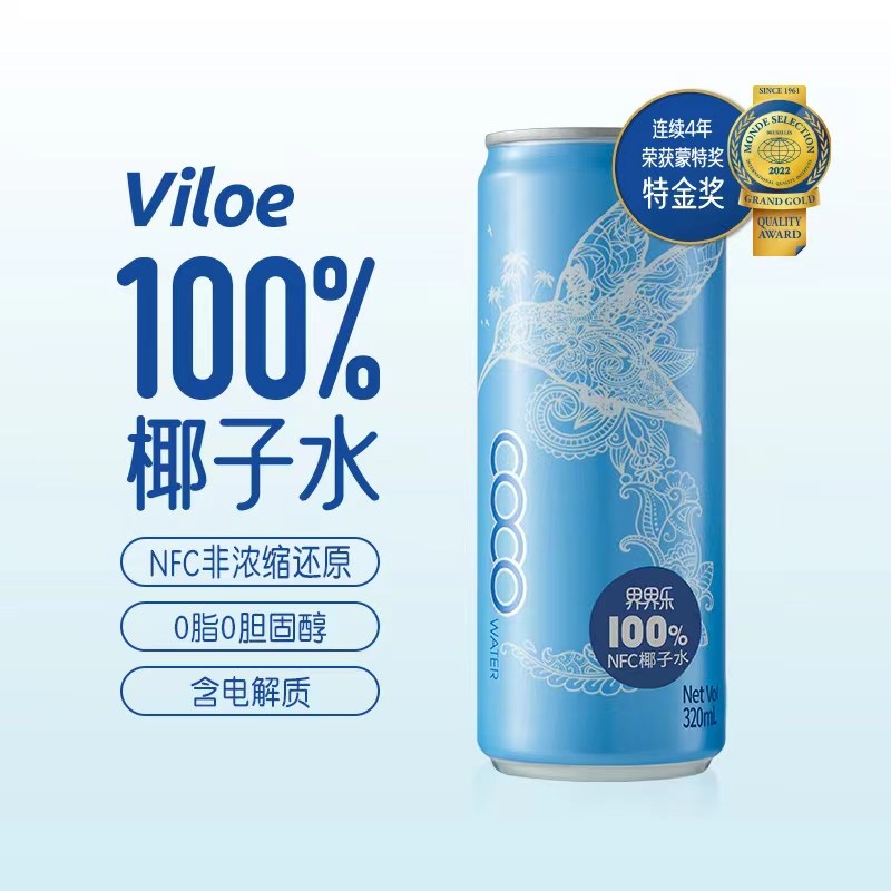 Viloe唯乐蜜语越南原装进口100%椰子水NFC鲜榨椰青饮品320ml*24罐
