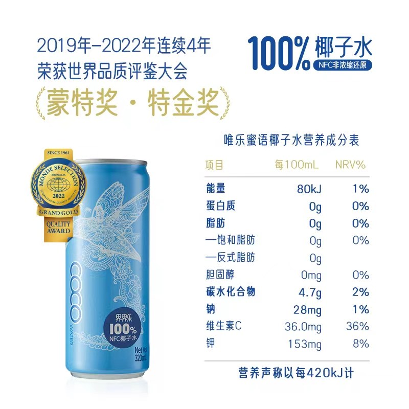 唯乐蜜语越南100%椰子水24瓶整箱