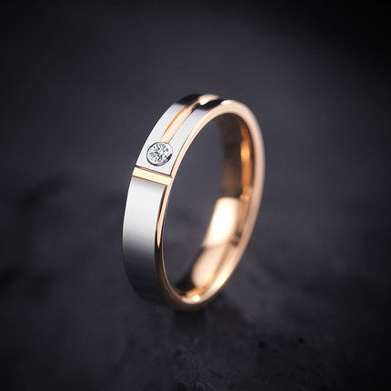 飒雅情侣对戒男士戒指玫瑰金结婚戒钨金彩金莫桑石钻戒女钨钢小众