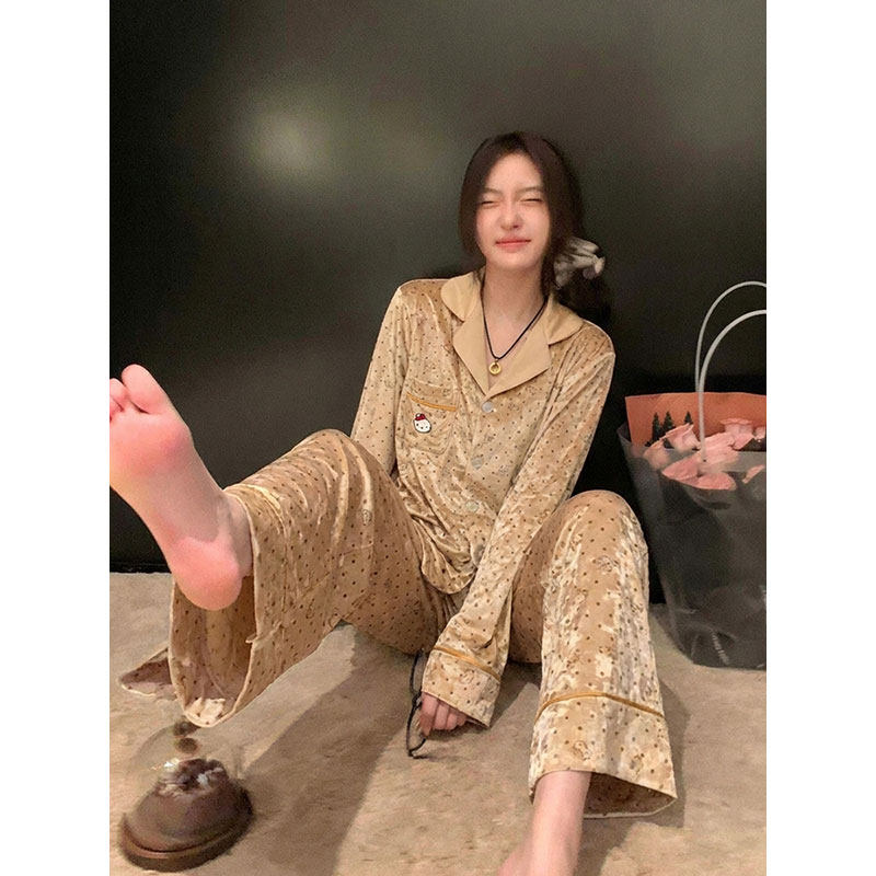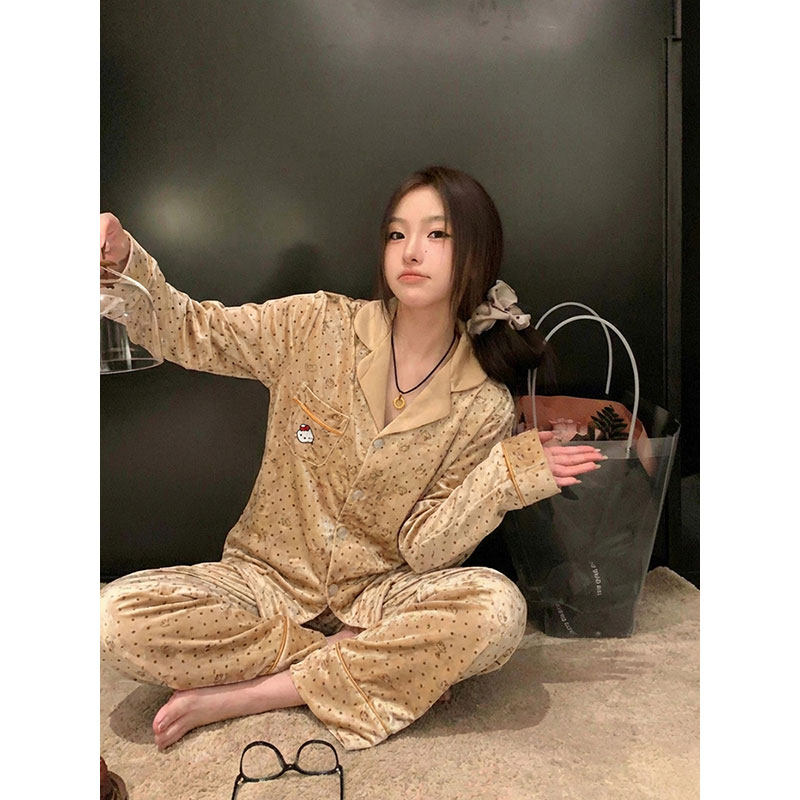 韩系卡通猫金丝绒休闲睡衣女2026