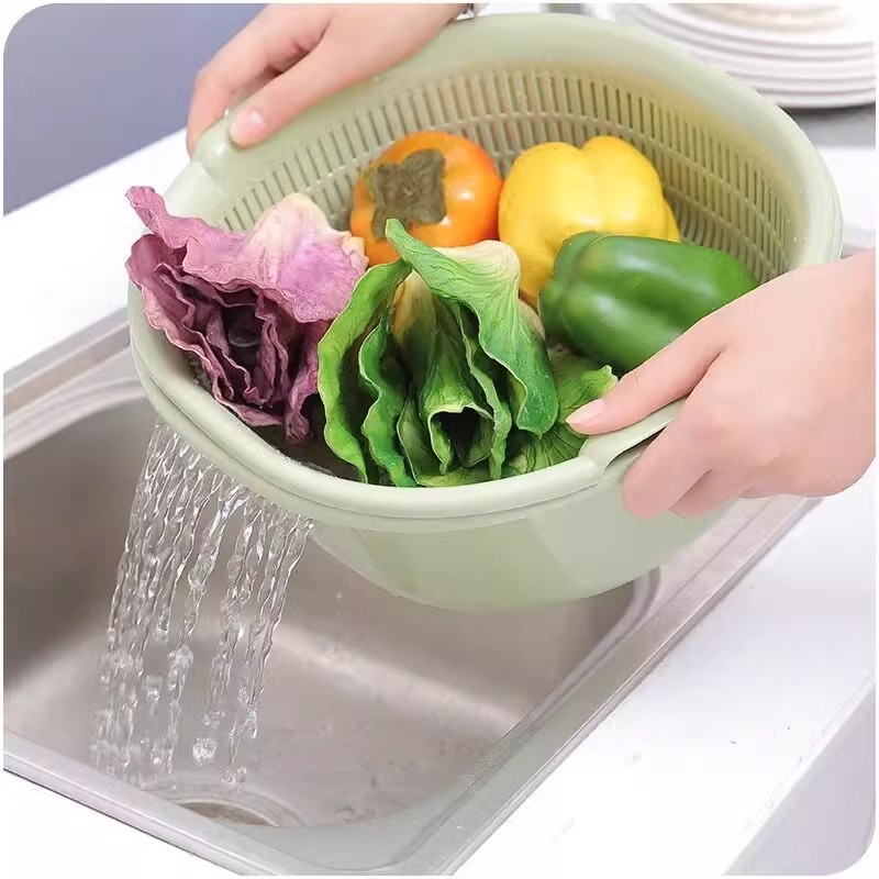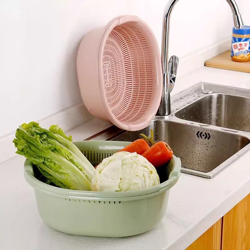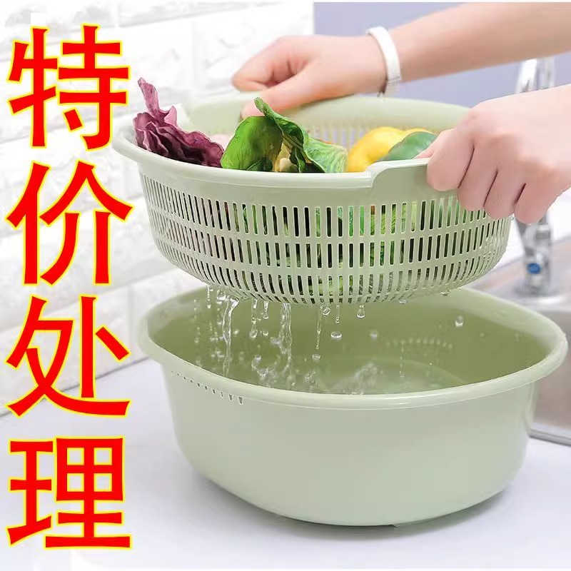 新款双层洗菜盆沥水篮家用客厅塑料水果盘厨房加厚滤水菜篓洗菜篮