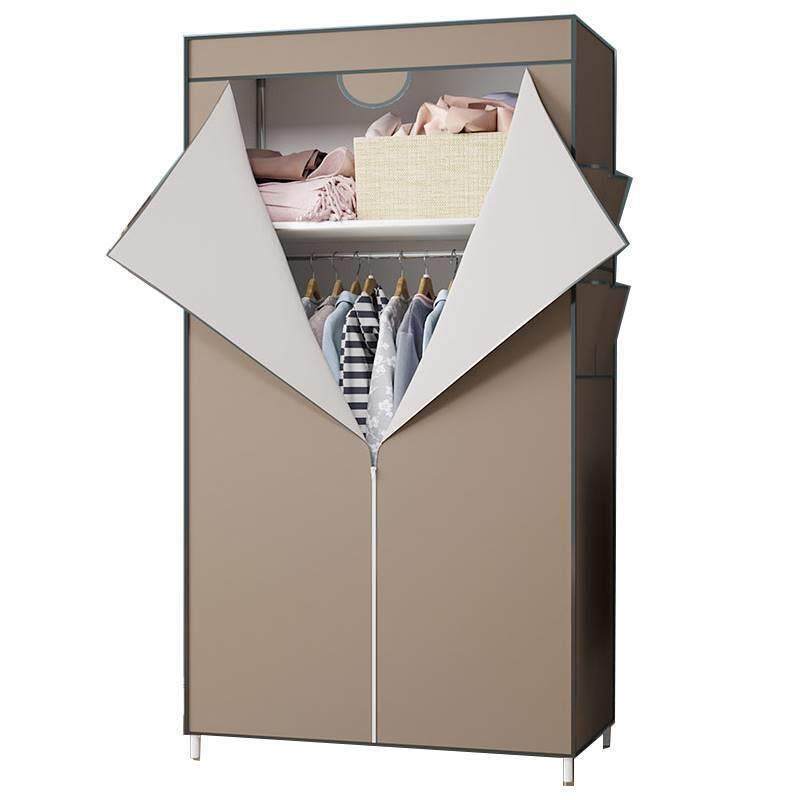 布衣柜拉链款家用卧室小号单人宿舍出租房用钢管加固简易布艺衣橱