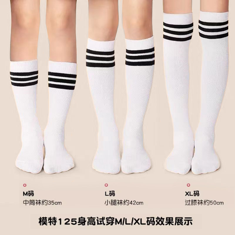 儿童中筒袜学校配校服袜子长筒袜女童幼儿园白色黑条纹过膝足球袜