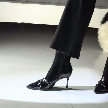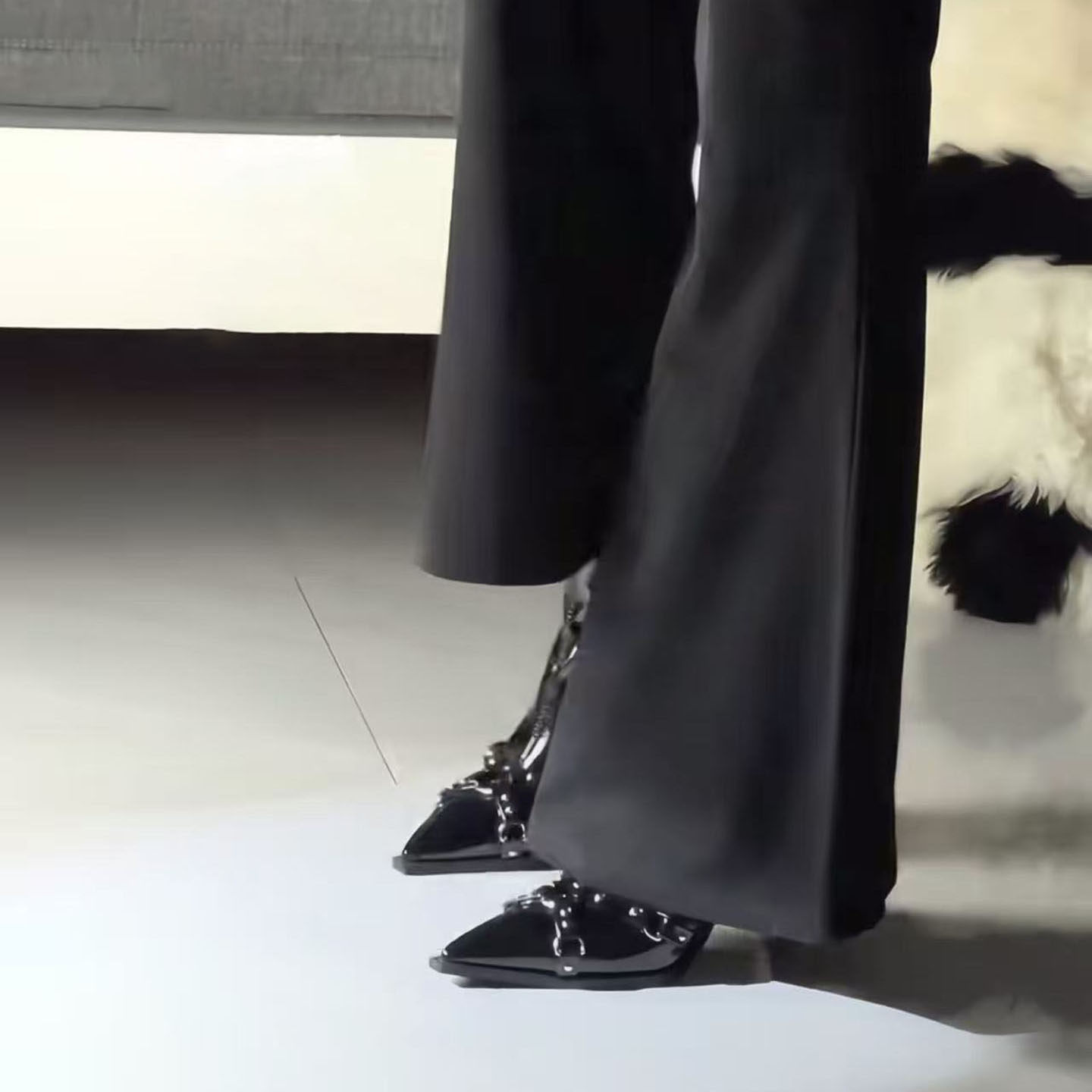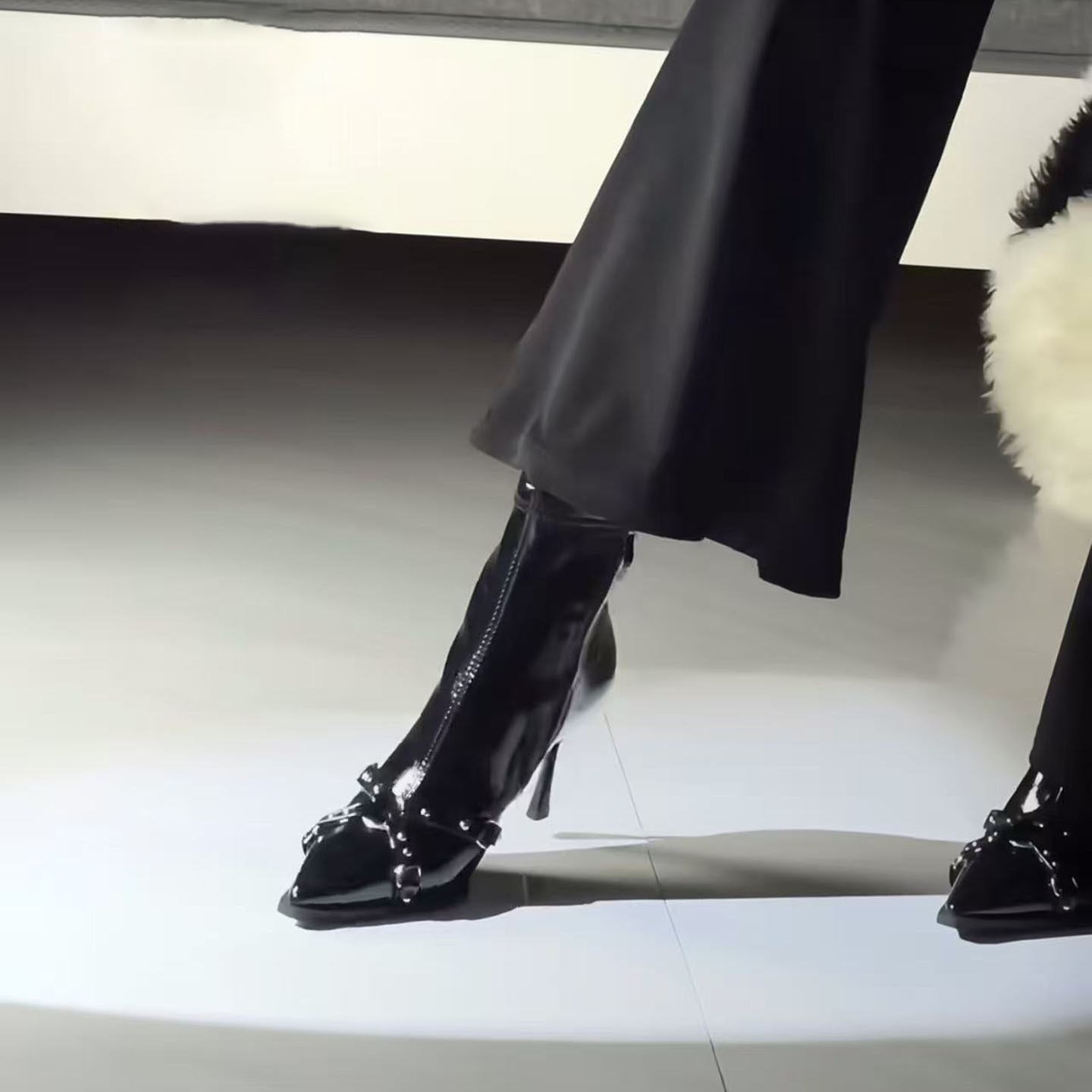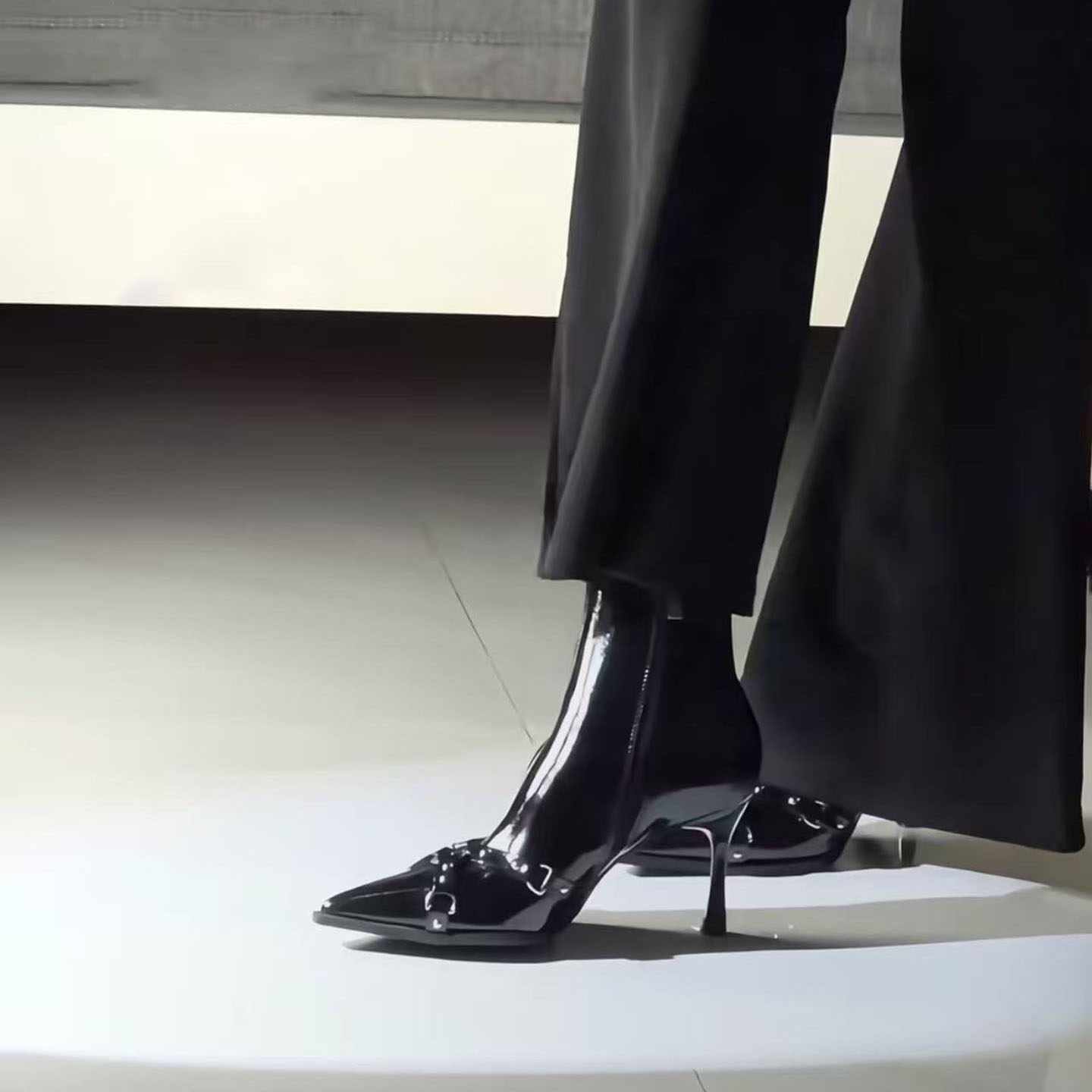 黑色尖头细跟短靴女2025年秋冬新款法式气质高跟铆钉瘦瘦靴单靴子