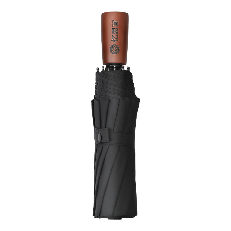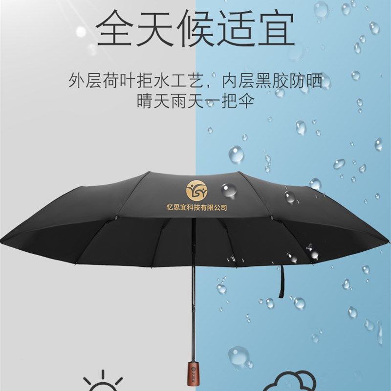木柄雨伞定制商务广告折叠伞皮套礼品盒装可印刷logo刻字图案订制