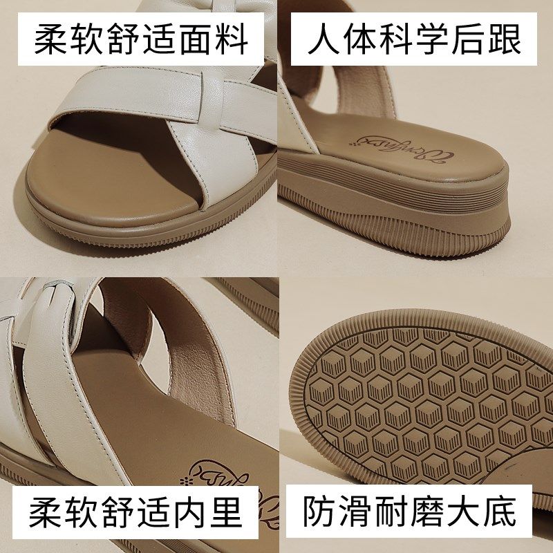 真皮妈妈凉鞋拖平底大码软底外穿防滑牛筋底中老年凉拖鞋女款夏季
