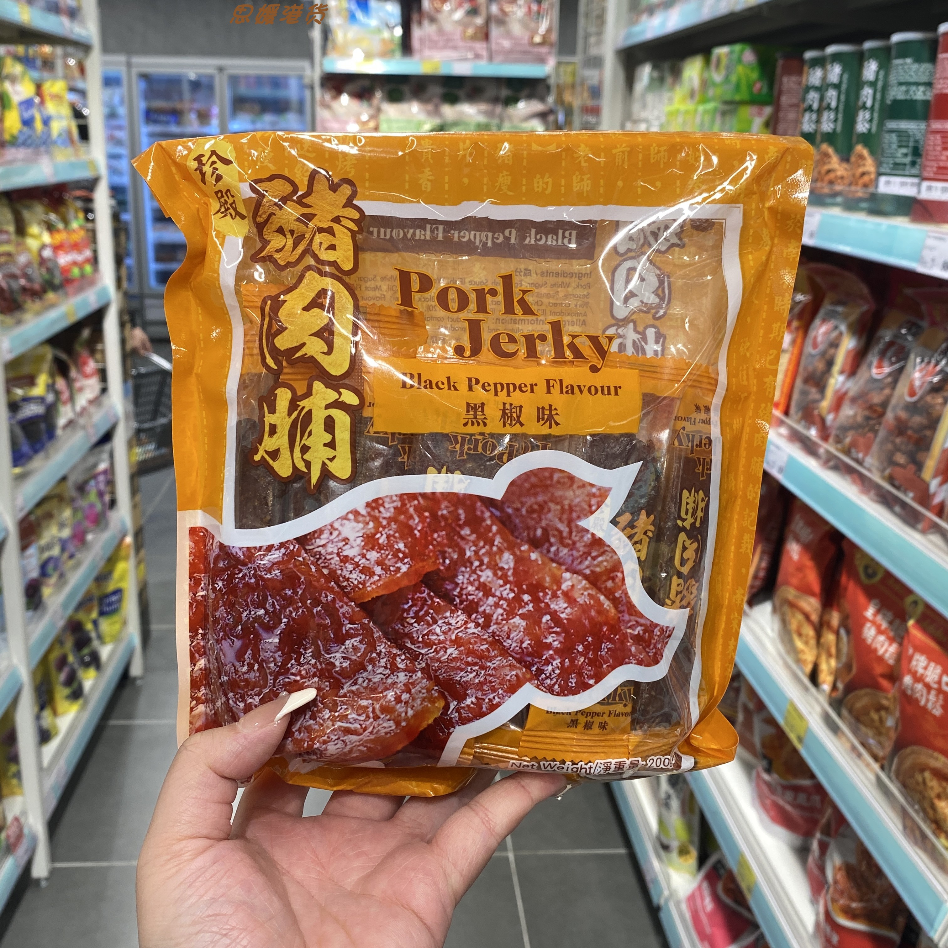 香港代购 珍殿猪肉脯黑椒味麻辣味果汁味猪肉干独立包装200g