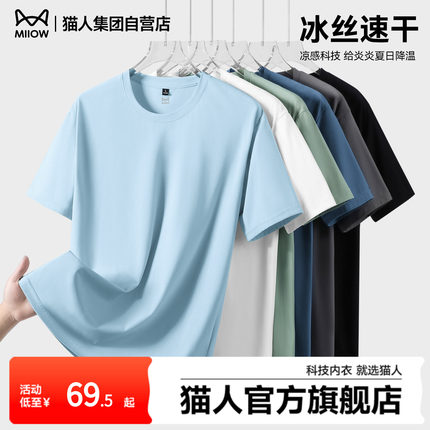 猫人速干t恤男夏季冰丝凉感透气运动上衣2026年新款薄款男士短袖J