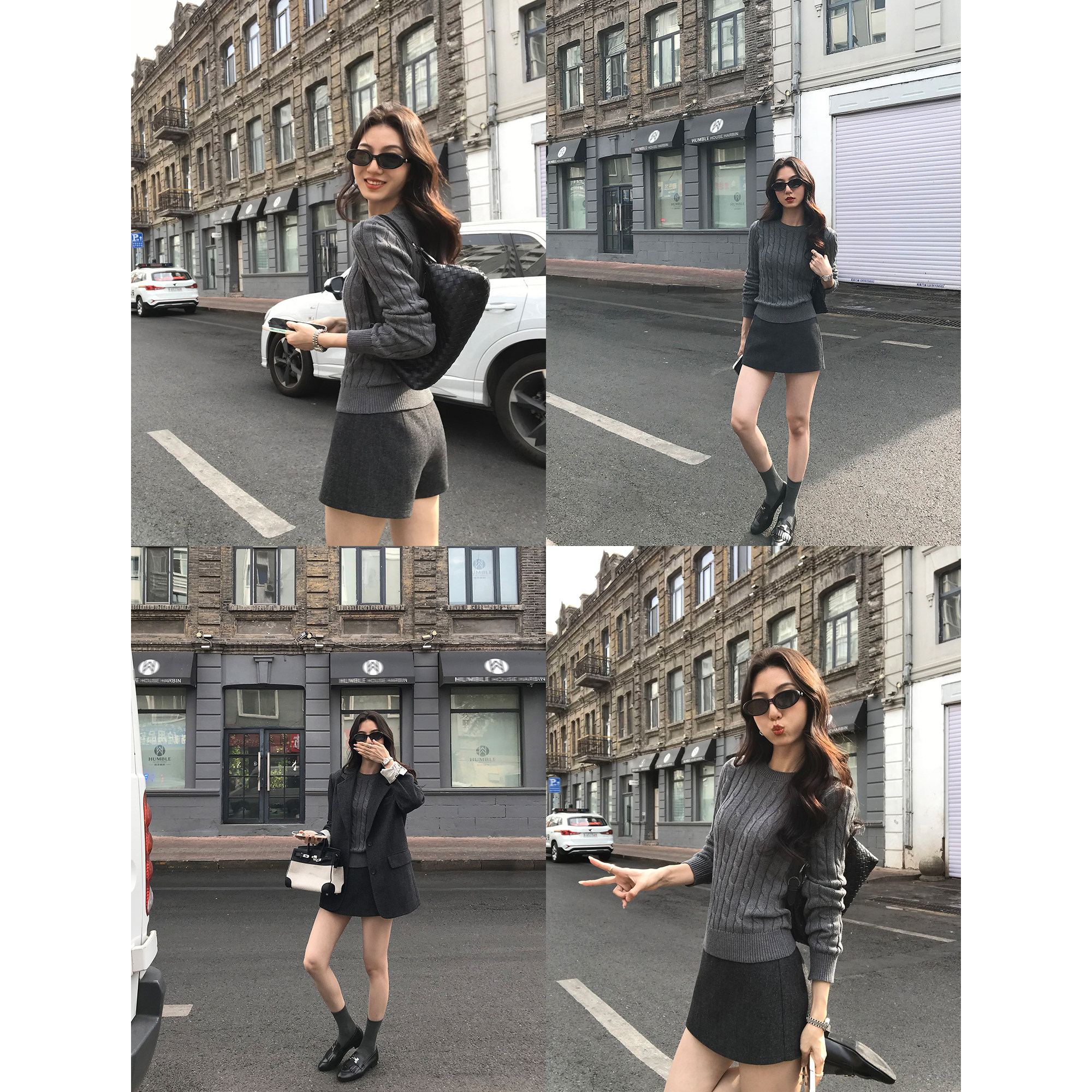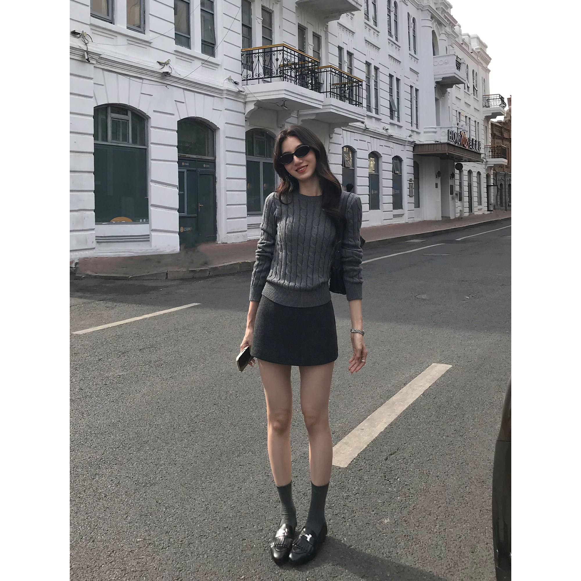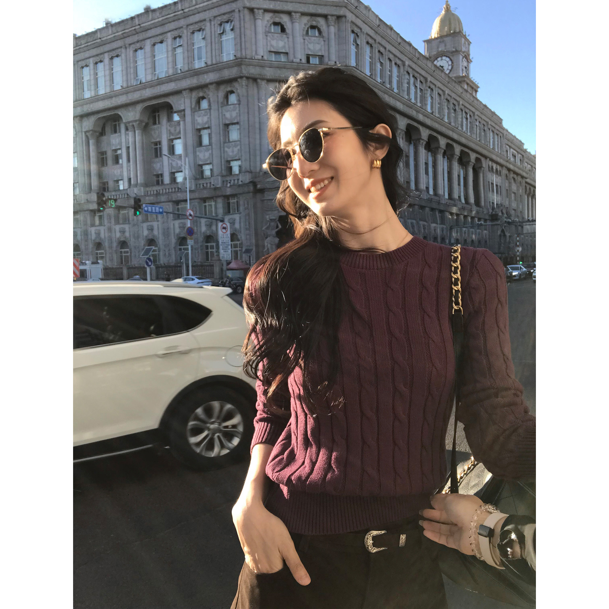 MULVAN 【现货8折】秋日织语 复古麻花圆领毛衣女套头修身上衣