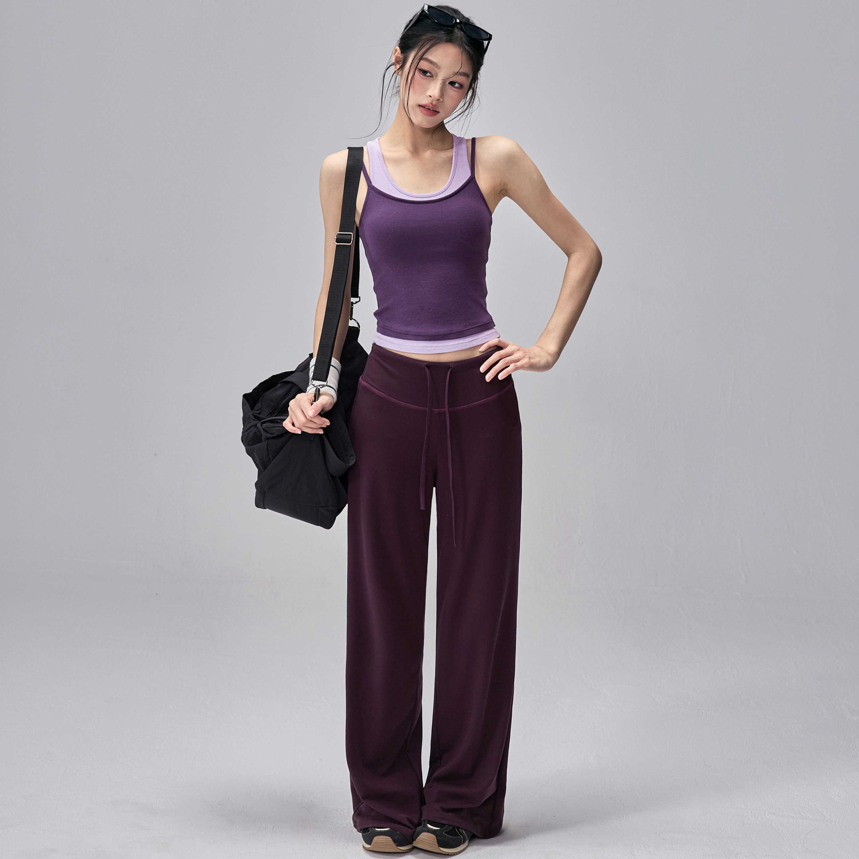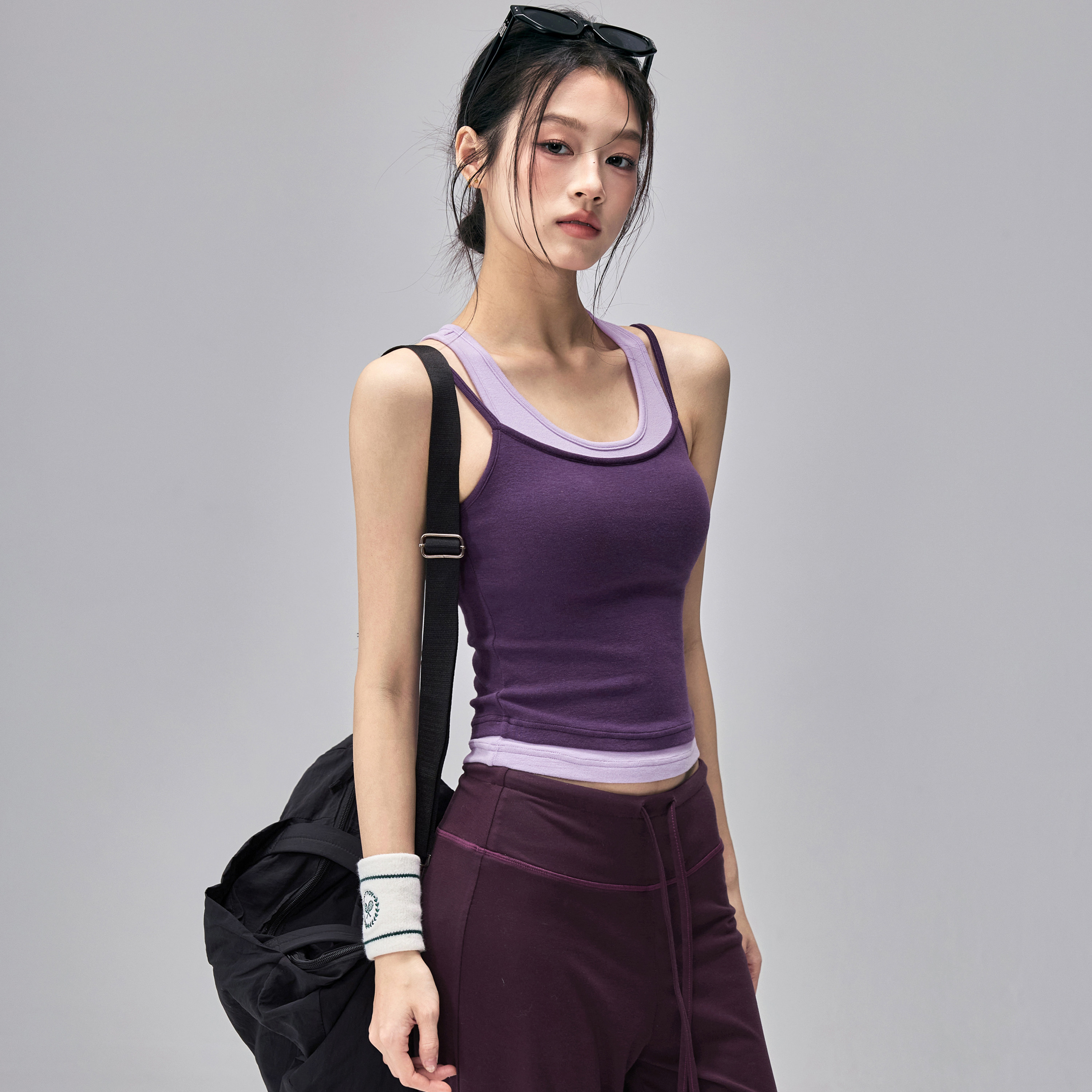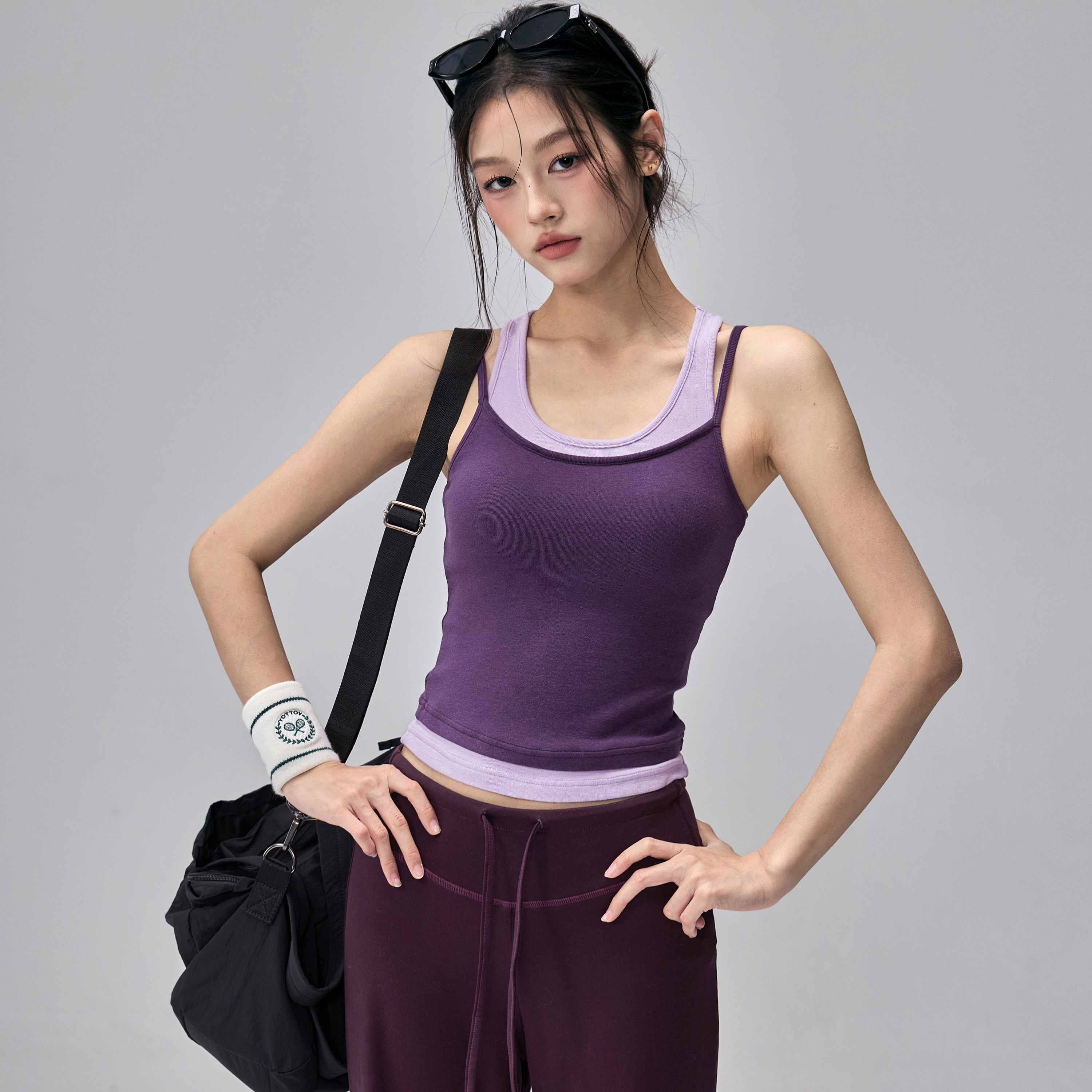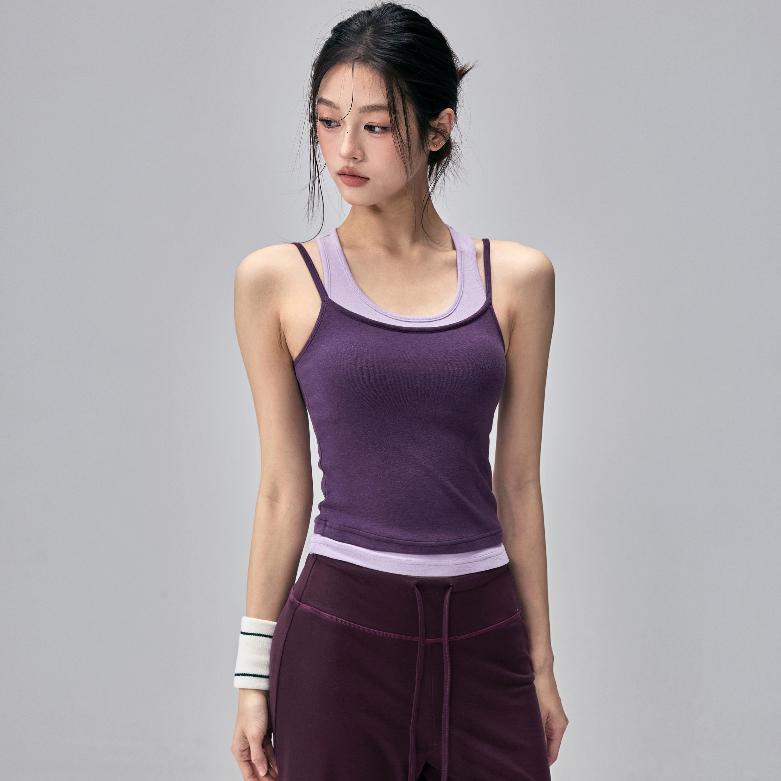 健身女孩撞色瑜伽服背心带胸垫假两件运动内衣设计感普拉提套装春