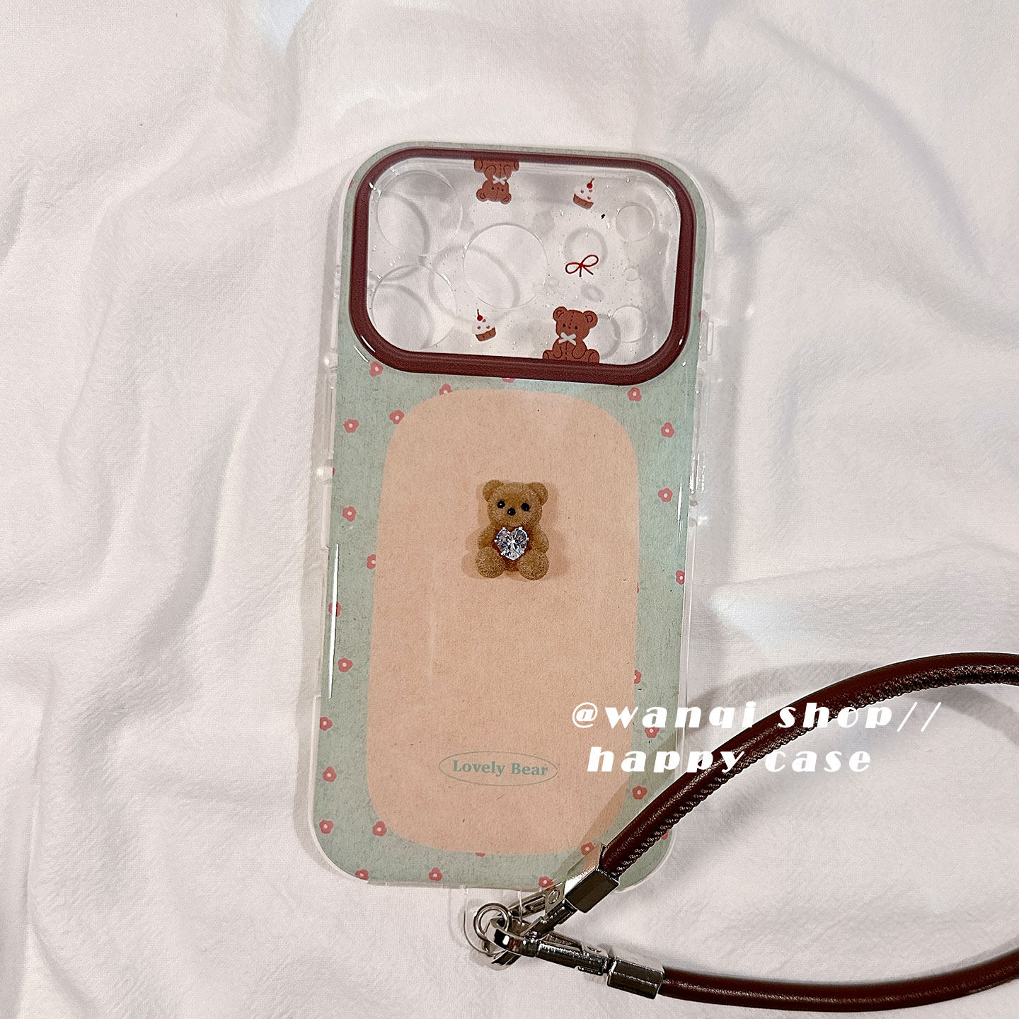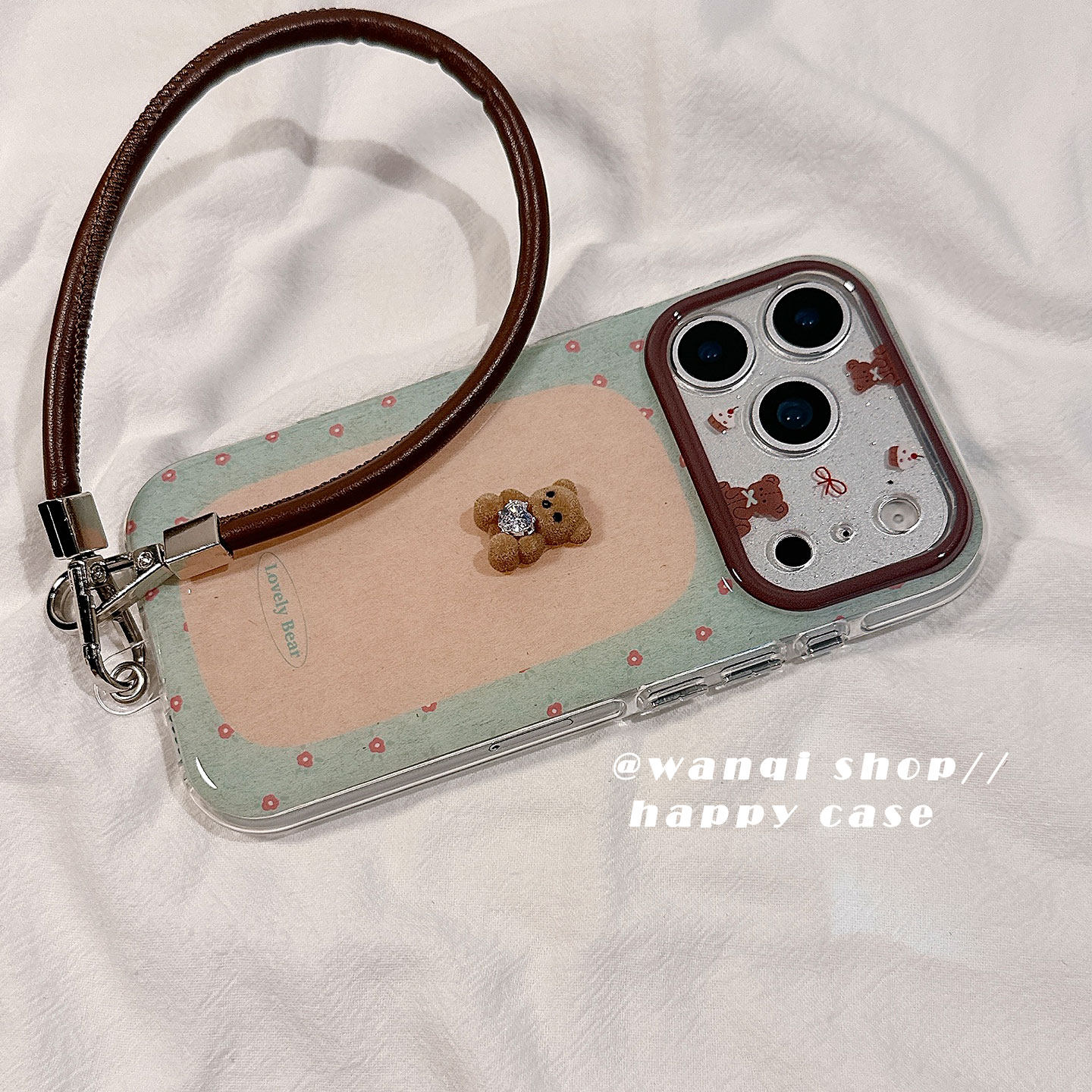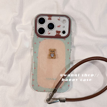 可爱卡通立体花朵小熊适用苹果17手机壳iphone16promax保护套13/14新款皮绳16Pro硅胶防摔15全包女软秋冬日韩