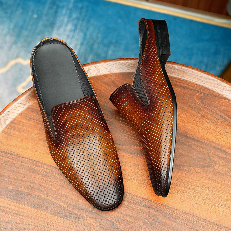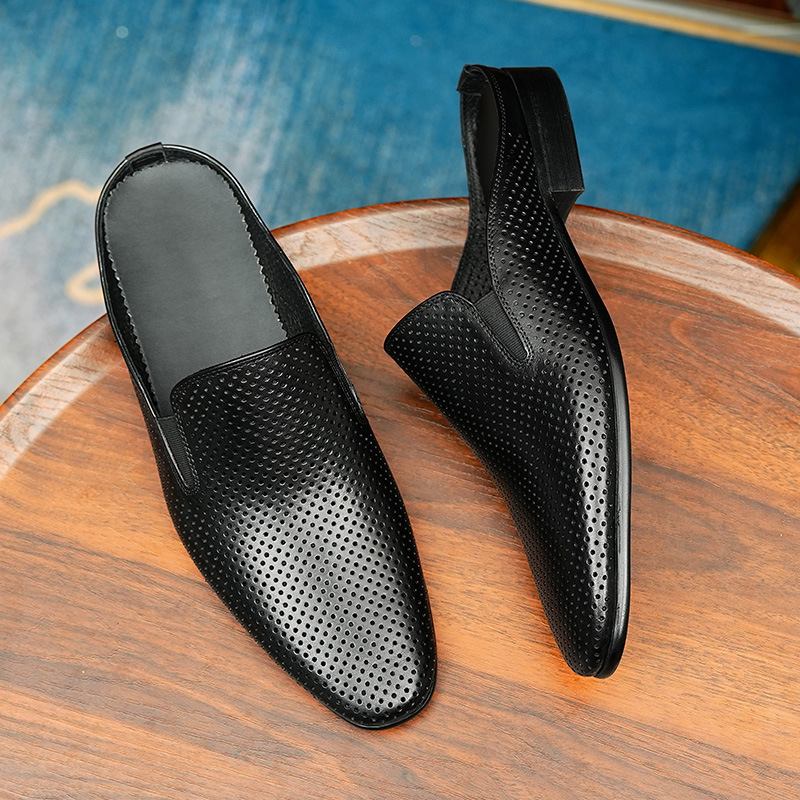 韩版包头拖鞋男真皮外穿懒人夏季镂空透气商务休闲半拖鞋潮流皮鞋