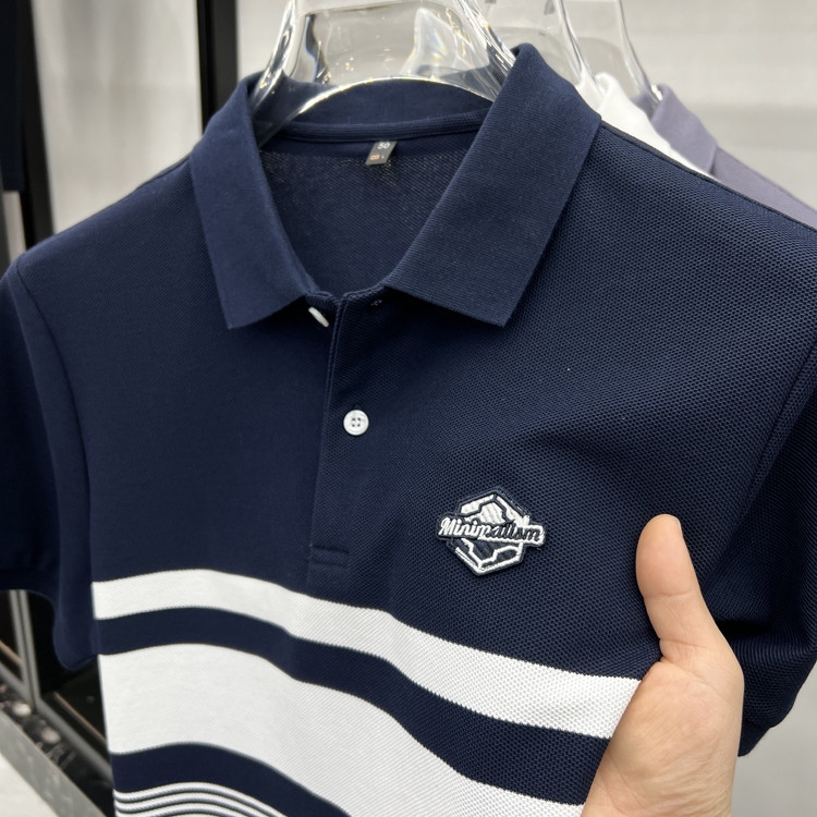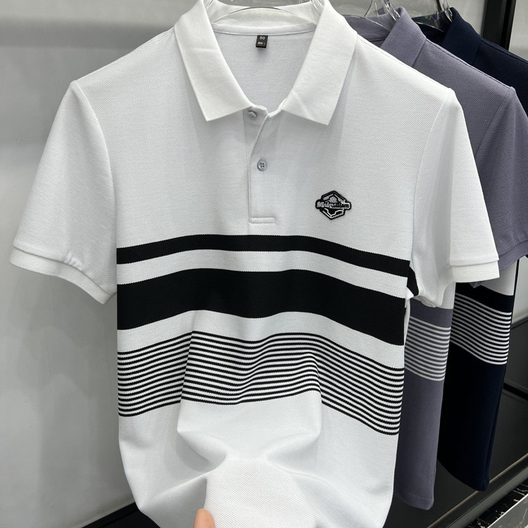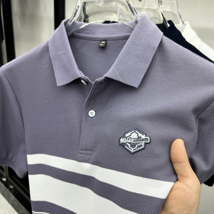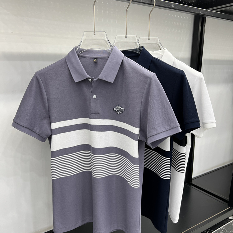 2025夏季新款短袖T恤中青年男士丝光棉条纹休闲半袖POLO衫上衣潮