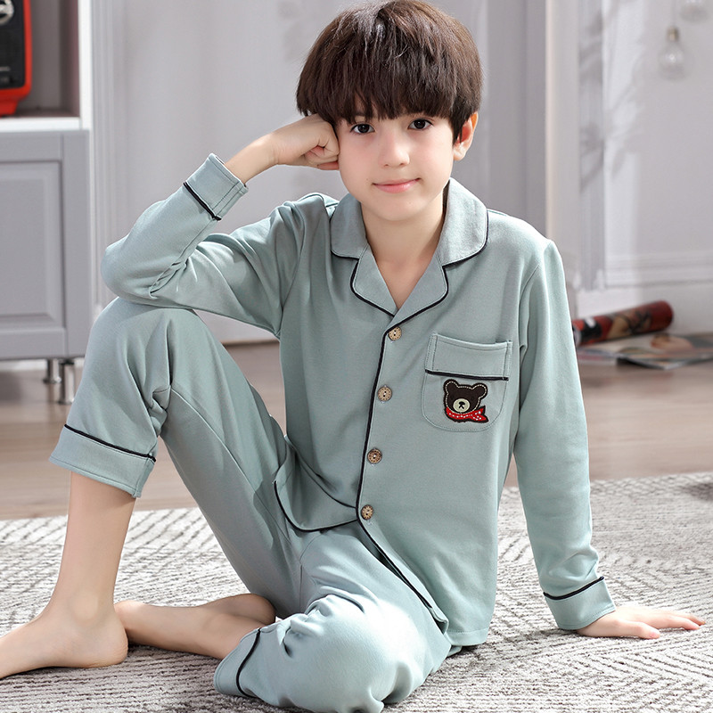 芬腾大童睡衣男孩子春秋季长袖纯棉男款青少年初中学生家居服套装