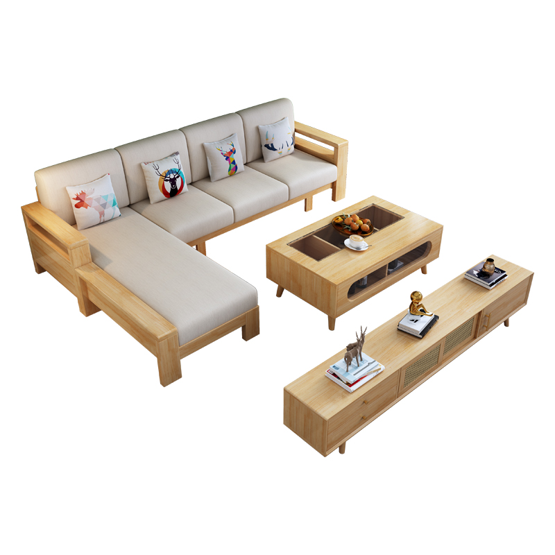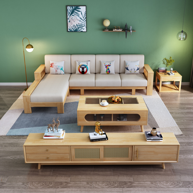 全实木沙发组合现代简约轻奢原木小户型沙发拉床客厅转角懒人沙发