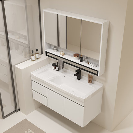实木浴室柜组合带搓板陶瓷洗脸盆卫生间阳台洗衣盆挂墙式洗手盆柜