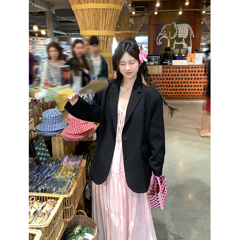 Adan 黑色西装秋季新款宽松百搭廓形高级感休闲小个子长袖西服女